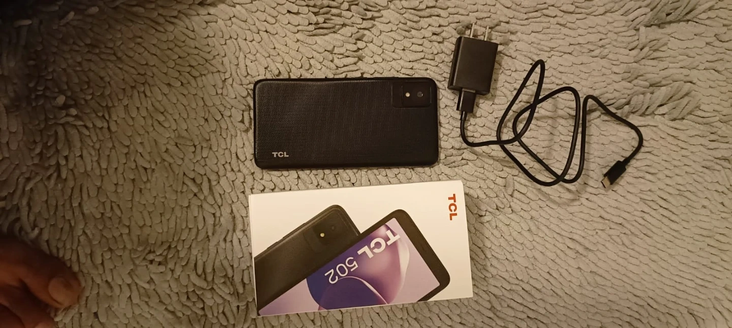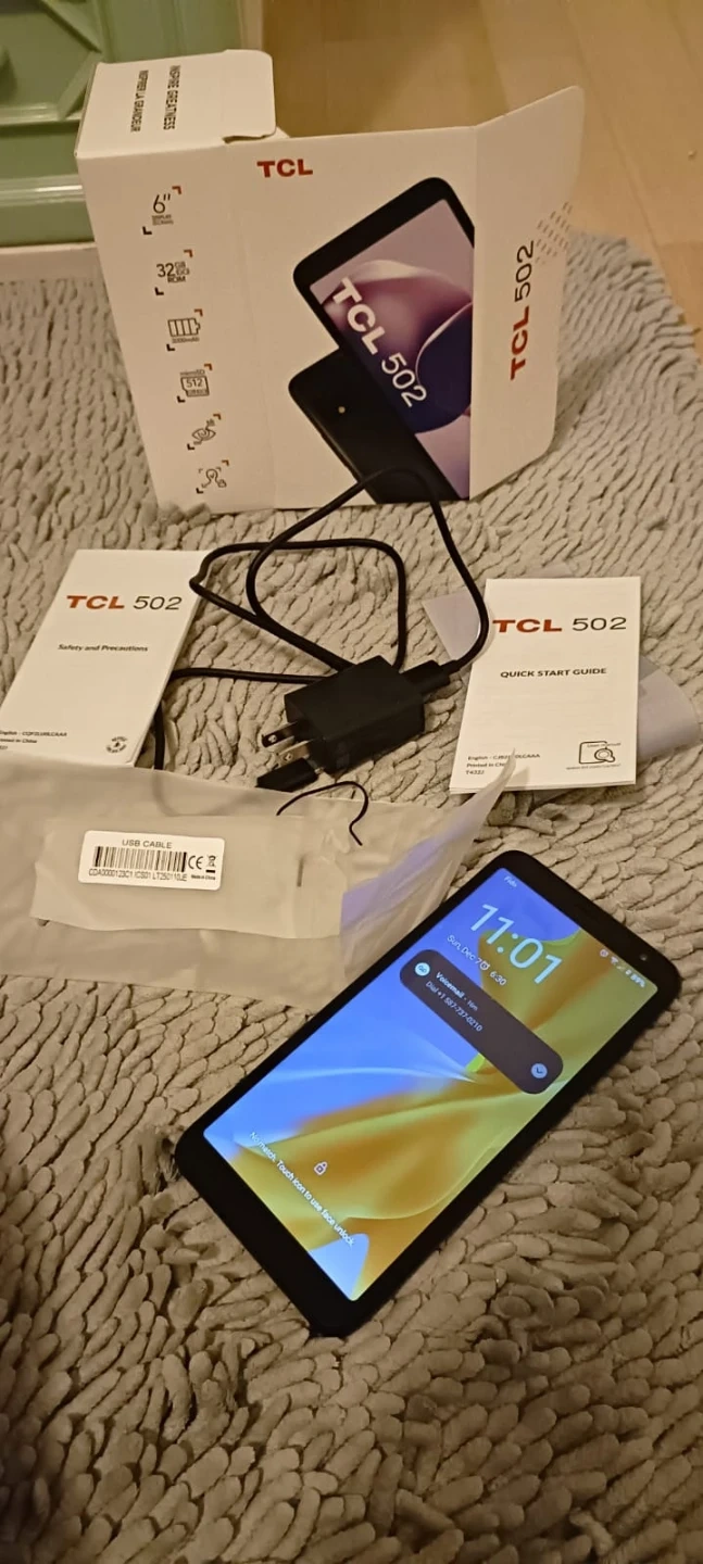 Selling a brand new TCL 502 smartphone in black. It comes with the original box and all included components like the charger and instructions. Working Fine 6 inch Screen