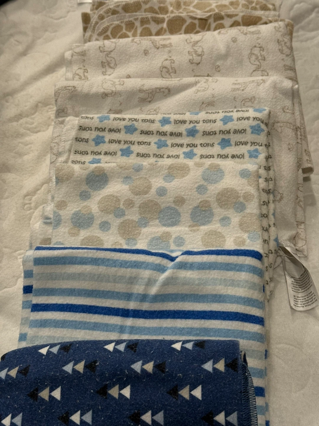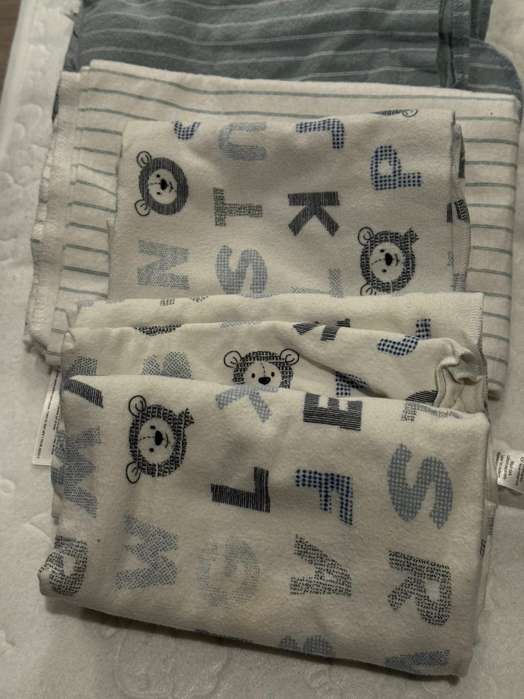 Selling a collection of baby receiving blankets in various cute patterns and solid colours. Total of 30 receiving blankets. $2 each, must be sold as a bundle. They are in great condition and ready for a new baby! There are a mix of colours and patterns, as you can see from the pictures. Perfect for keeping your little one clean and comfy. Thank you for visiting my listing!