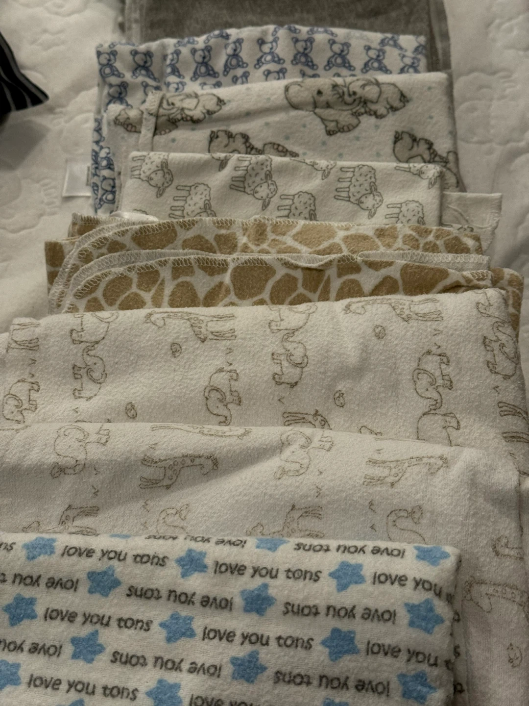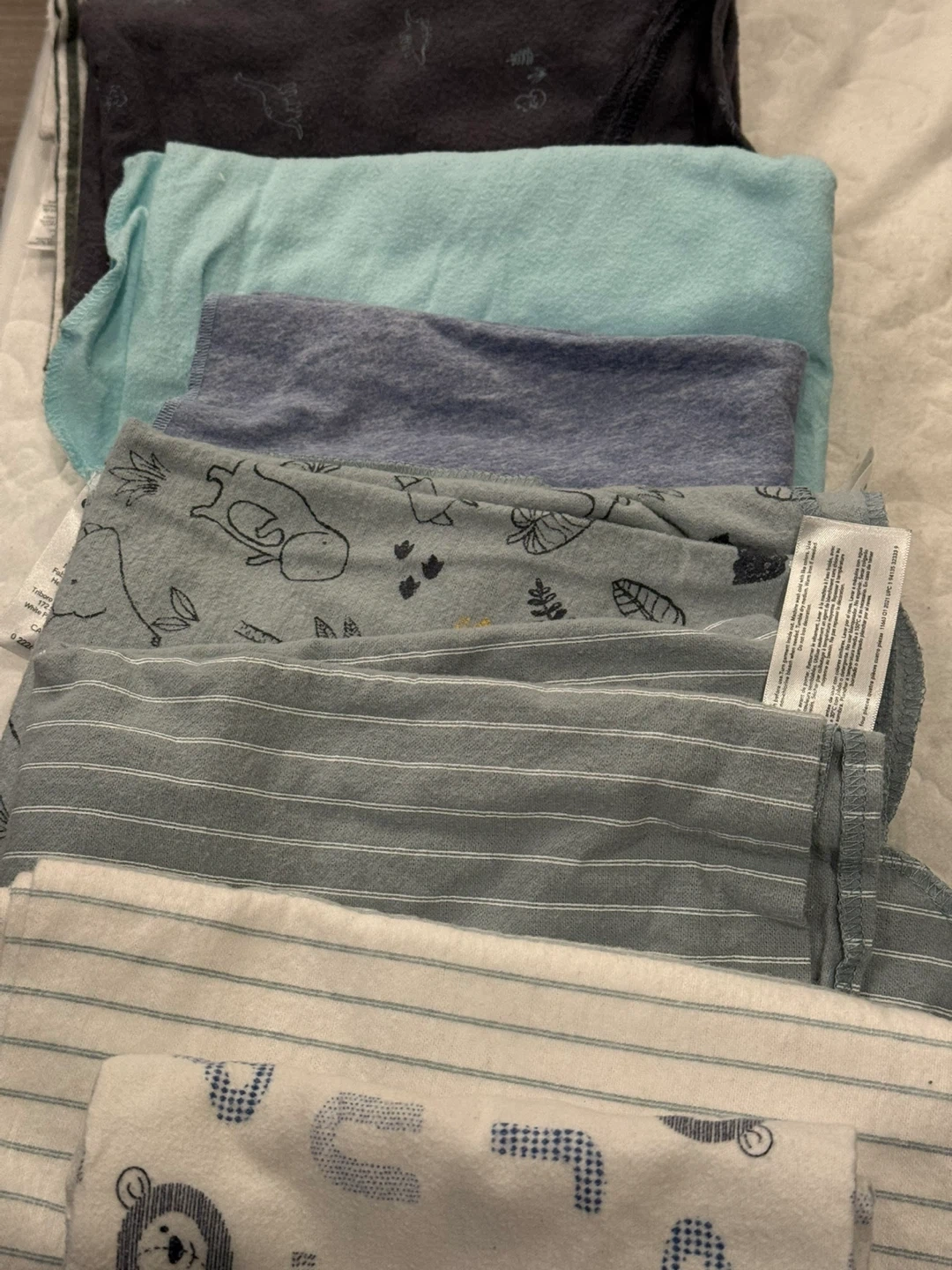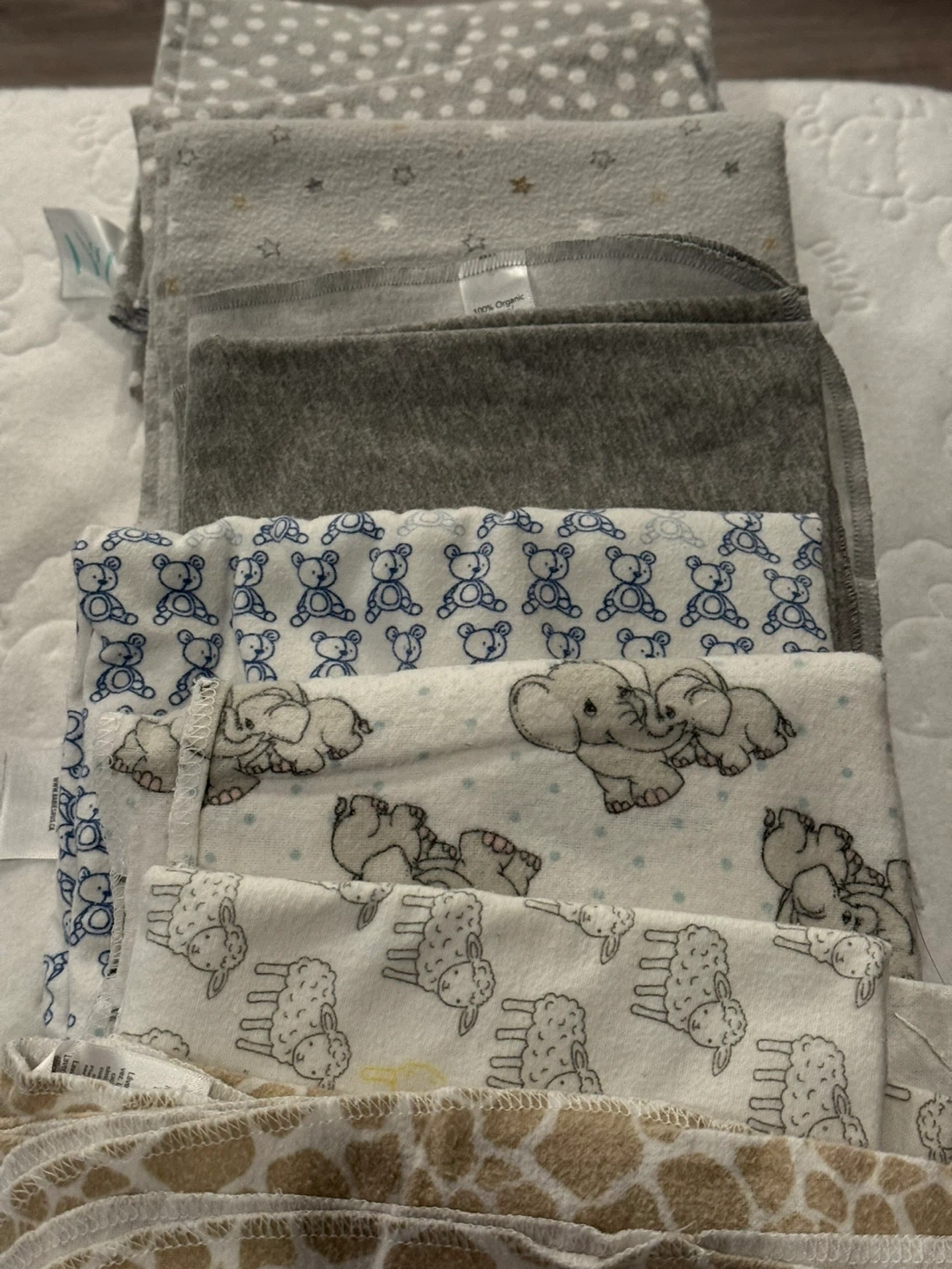 Selling a collection of baby receiving blankets in various cute patterns and solid colours. Total of 30 receiving blankets. $2 each, must be sold as a bundle. They are in great condition and ready for a new baby! There are a mix of colours and patterns, as you can see from the pictures. Perfect for keeping your little one clean and comfy. Thank you for visiting my listing!
