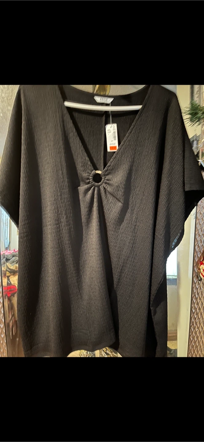 Here's a lovely black V-neck top It's in great condition and ready for a new wardrobe. The tag shows an original price of $44.99.