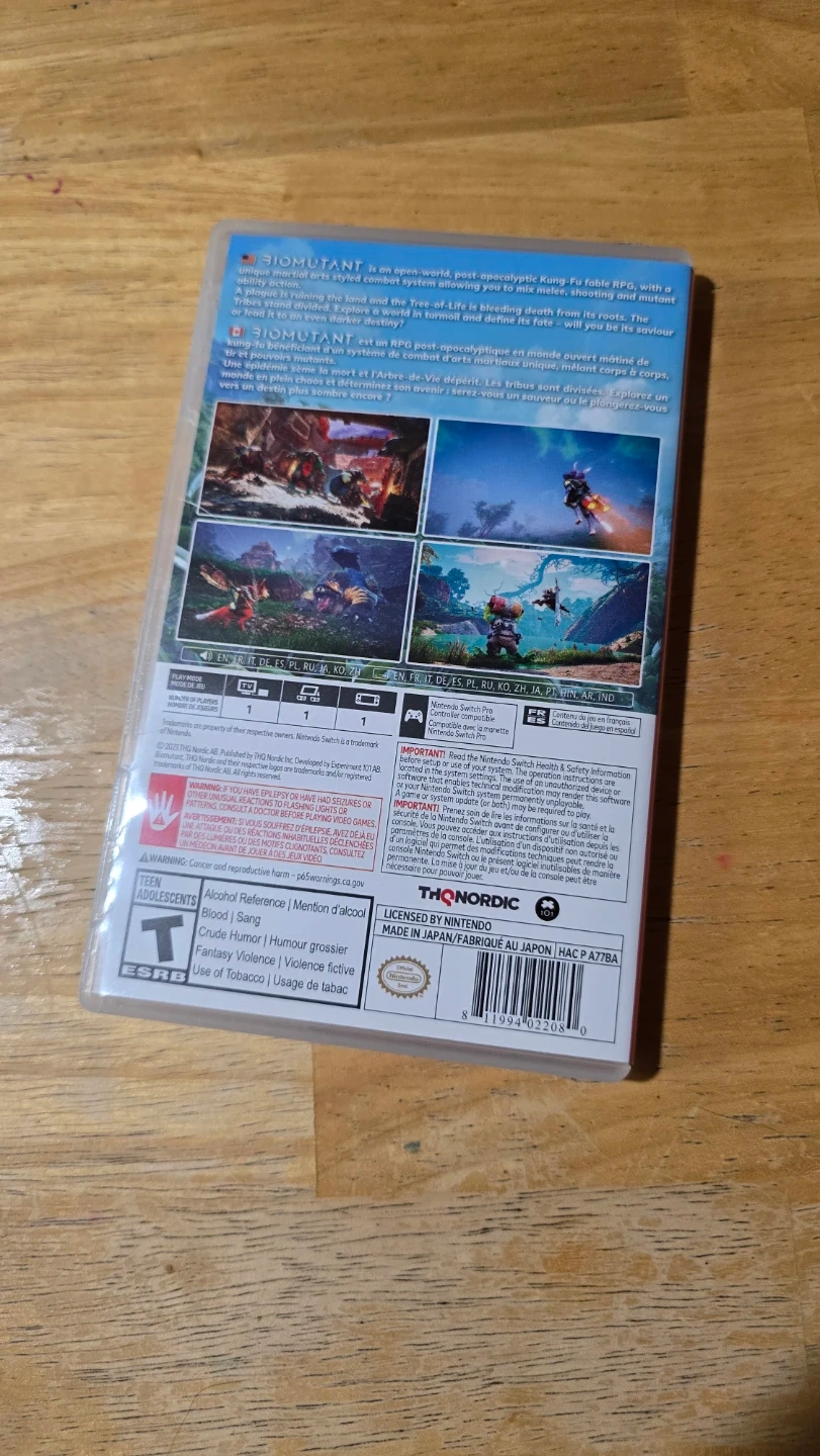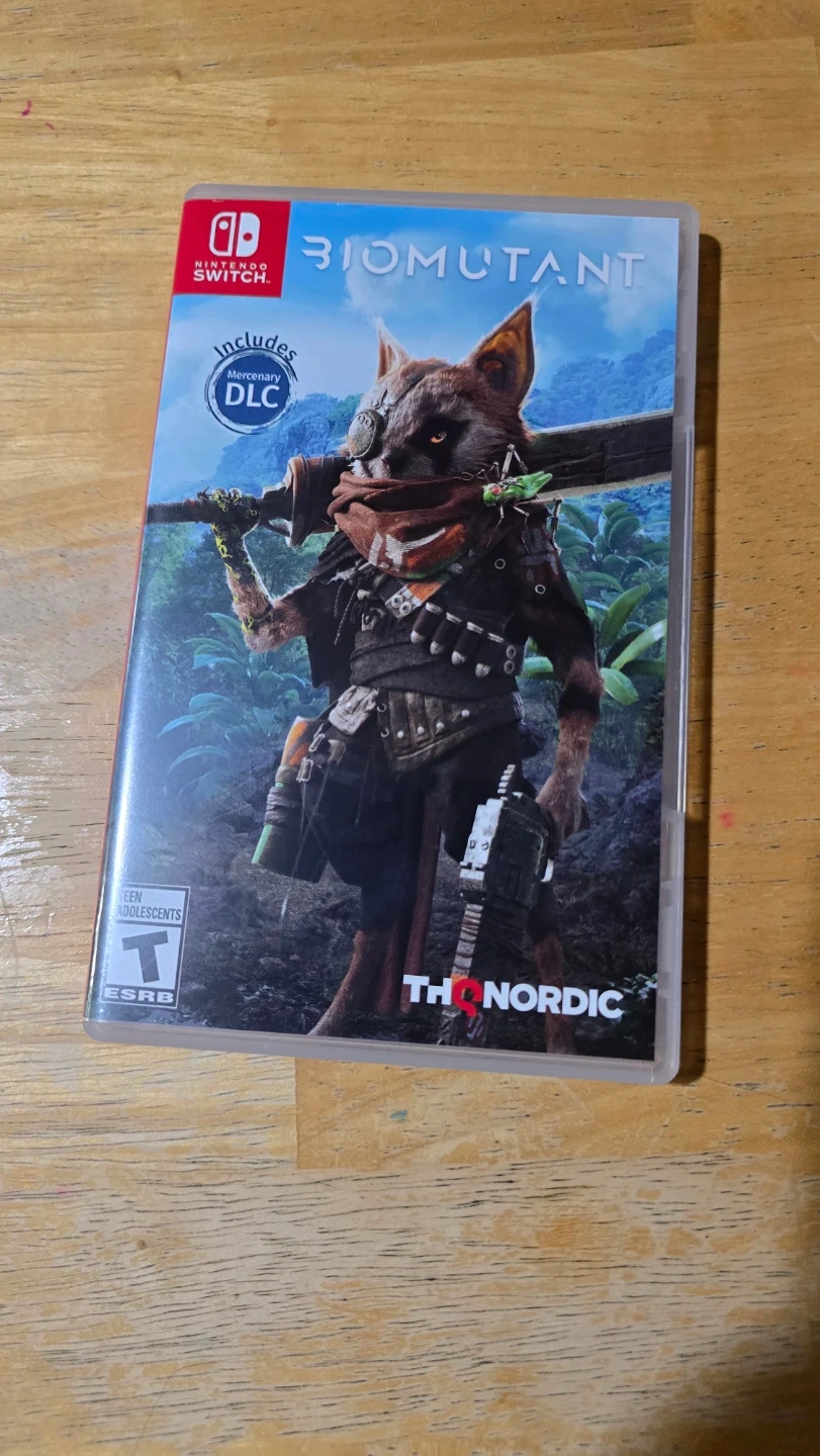 Selling Biomutant for the Nintendo Switch. It includes the Mercenary DLC. The game is rated T for Teen by the ESRB for Alcohol Reference, Blood, Crude Humor, Fantasy Violence, and Use of Tobacco