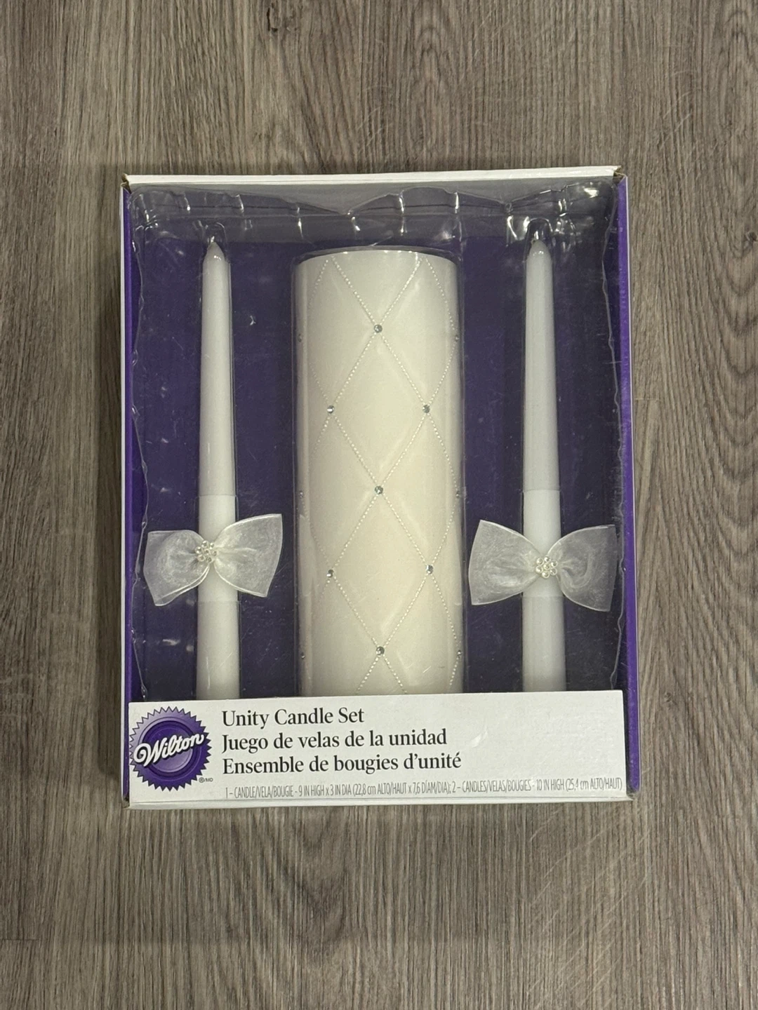 Selling a brand new Wilton Unity Candle Set, still in its original packaging! This set includes one centre candle (9 inches high x 3 inches in diameter) and two taper candles (10 inches high). Perfect for adding a special touch to any ceremony or event. Thank you for visiting my listing!