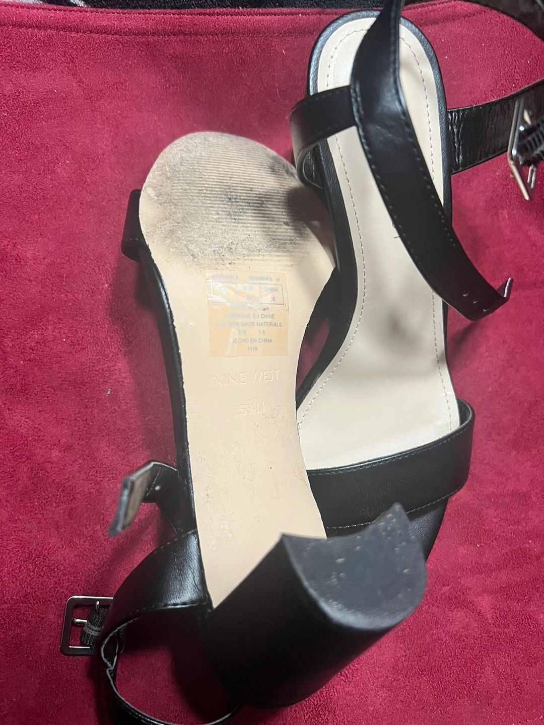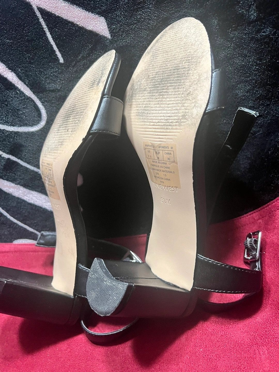 Selling a pair of Nine West black heels in size 5.5M. They're in good condition and ready for a new owner! Clearing out my closet.