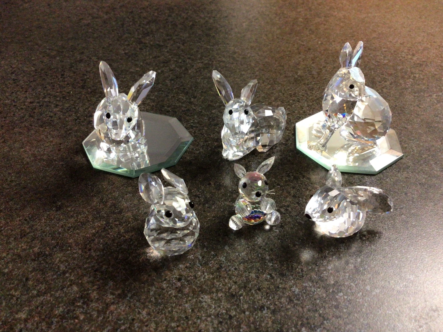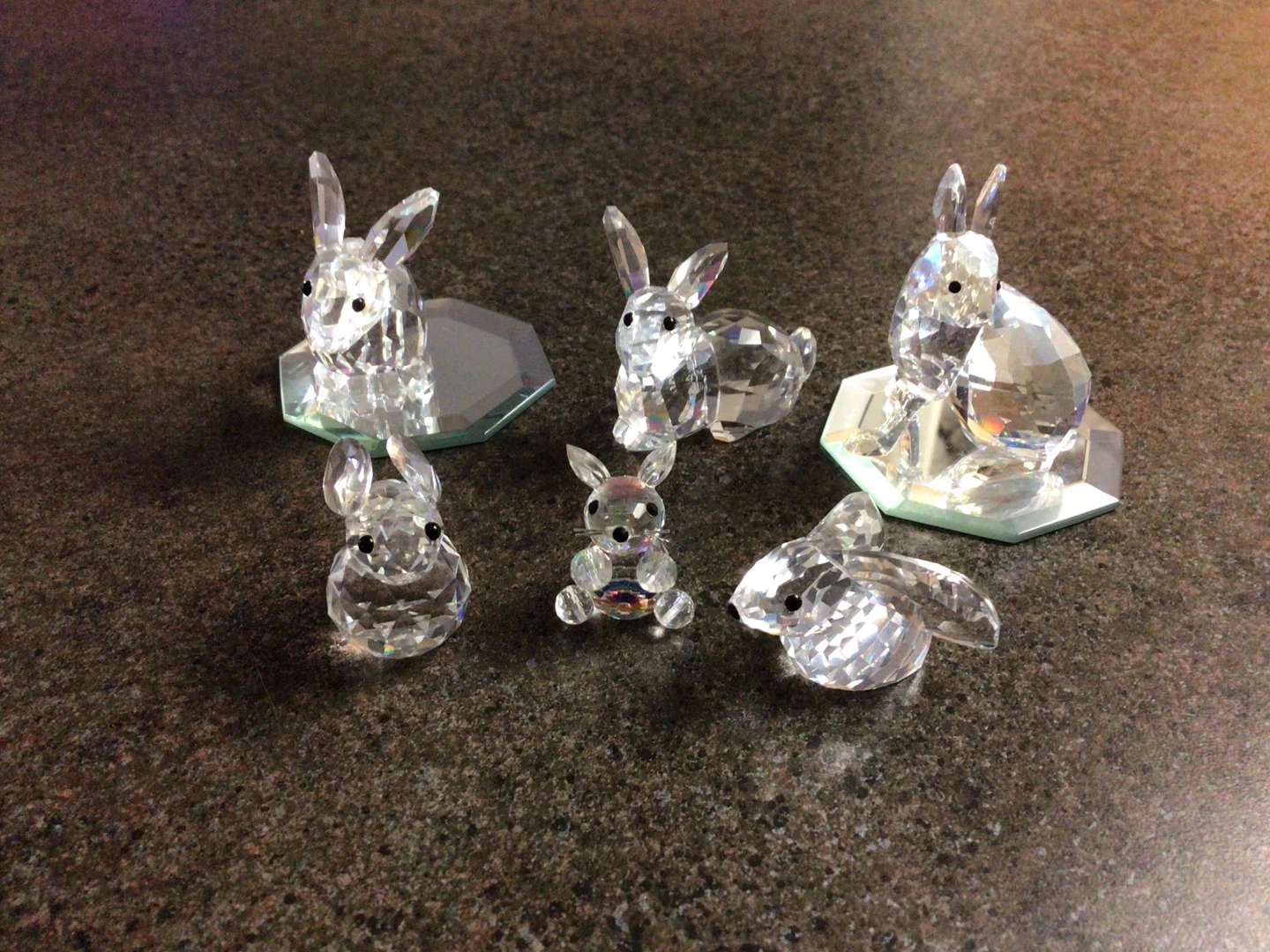 Selling a collection of Swarovski crystal rabbit figurines. They are in great condition and would make a lovely addition to any collection or as a decorative piece for your home. The figurines vary slightly in size and design, adding to their unique charm