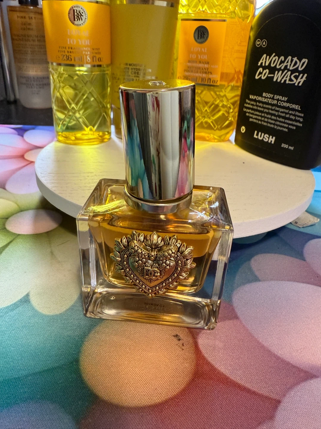 Selling a bottle of D&G Devotion 30ml Eau de Parfum. It's a lovely scent, perfect for everyday wear or a special occasion. The bottle is in great condition and ready to find a new home. Combined with BBw loyal to you and Lush Avocado CoWash for layering.