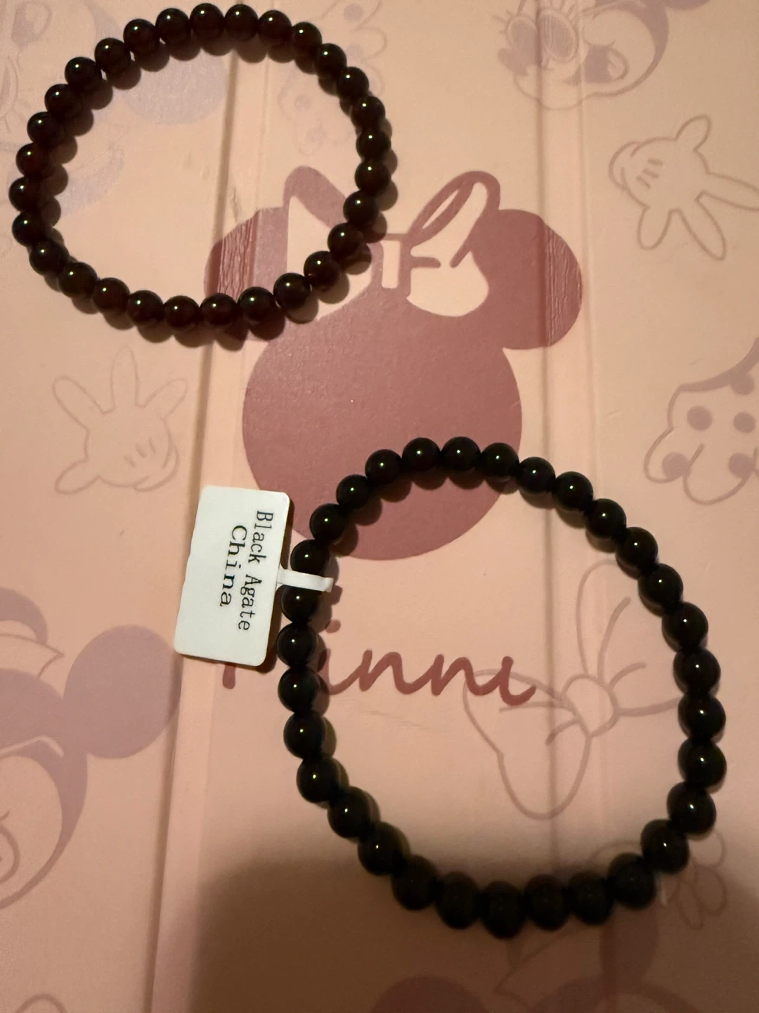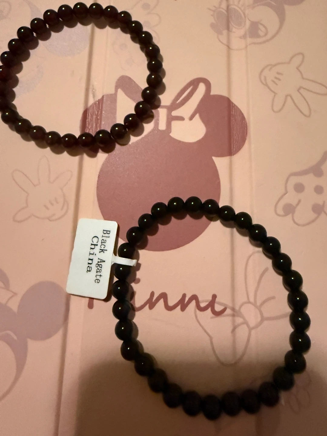 Selling a set of two beaded bracelets! One is a dark brown/red colour, and the other is black. Both are made of agate beads and would make a great addition to any outfit