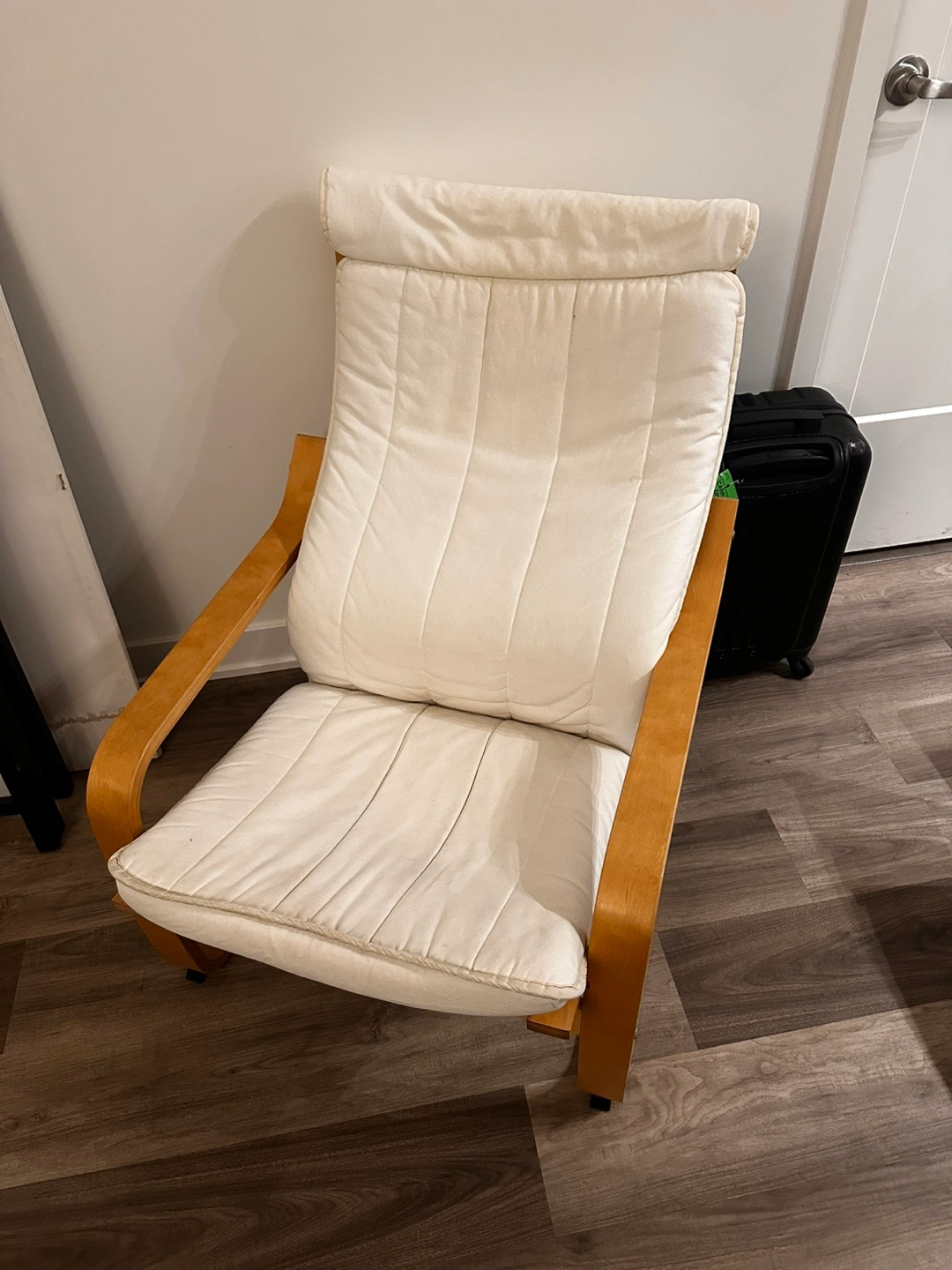 Selling a comfy IKEA Poang chair! It's in great shape and perfect for relaxing as it mimics a rocking chair. Cover included and is in perfect condition.
