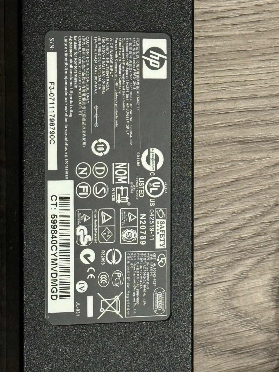 Selling a used HP AC Adapter, model PPP012H-S. It's compatible with HP notebook products. The adapter has a wide range input of 100-240V ~ 1.5A (1,5A) 50-60Hz, and an output of 19V 4.74A (4,74A) 90W MAX. The PPP012H-S series refers to a 90W (19V, 4.74A) AC Power Adapter/Charger for HP laptops, featuring a common 7.4mm x 5.0mm smart-pin connector, designed for various HP Pavilion, ProBook, EliteBook models, offering safety features like overload/short circuit protection. Thank you for visiting my listing!