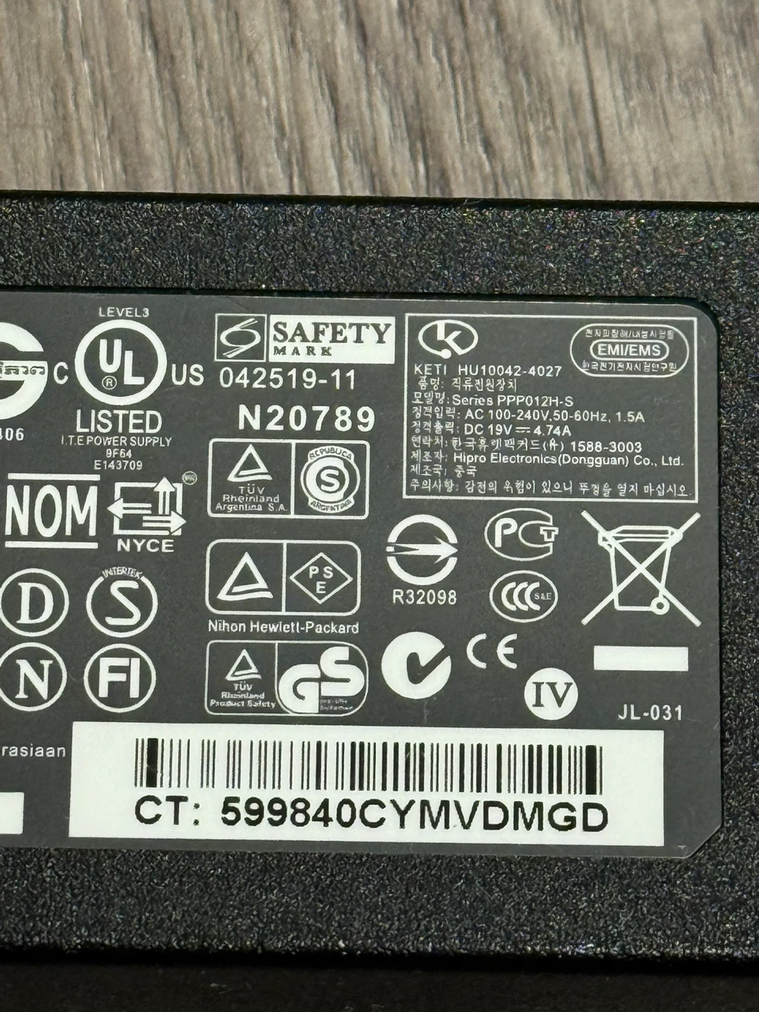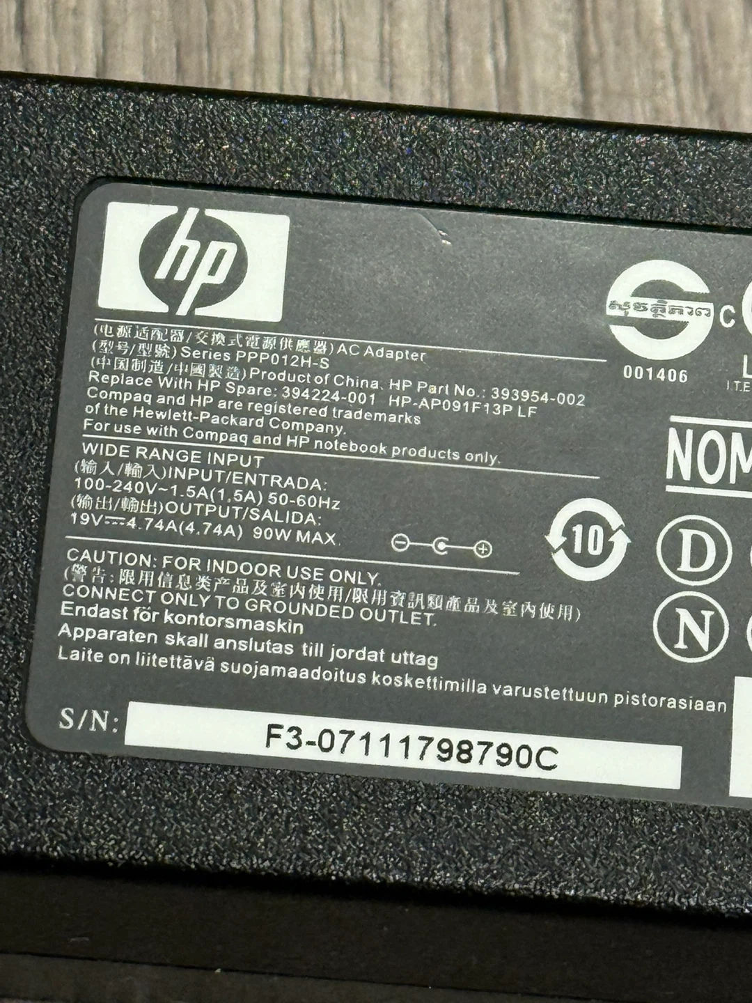 Selling a used HP AC Adapter, model PPP012H-S. It's compatible with HP notebook products. The adapter has a wide range input of 100-240V ~ 1.5A (1,5A) 50-60Hz, and an output of 19V 4.74A (4,74A) 90W MAX. The PPP012H-S series refers to a 90W (19V, 4.74A) AC Power Adapter/Charger for HP laptops, featuring a common 7.4mm x 5.0mm smart-pin connector, designed for various HP Pavilion, ProBook, EliteBook models, offering safety features like overload/short circuit protection. Thank you for visiting my listing!
