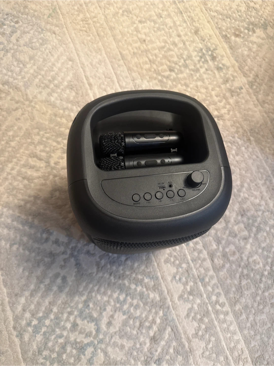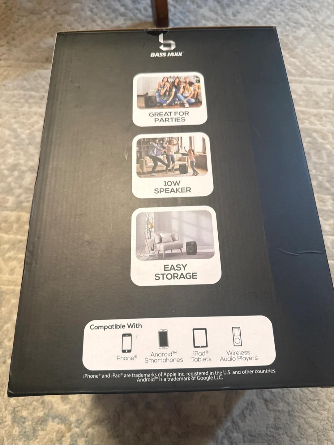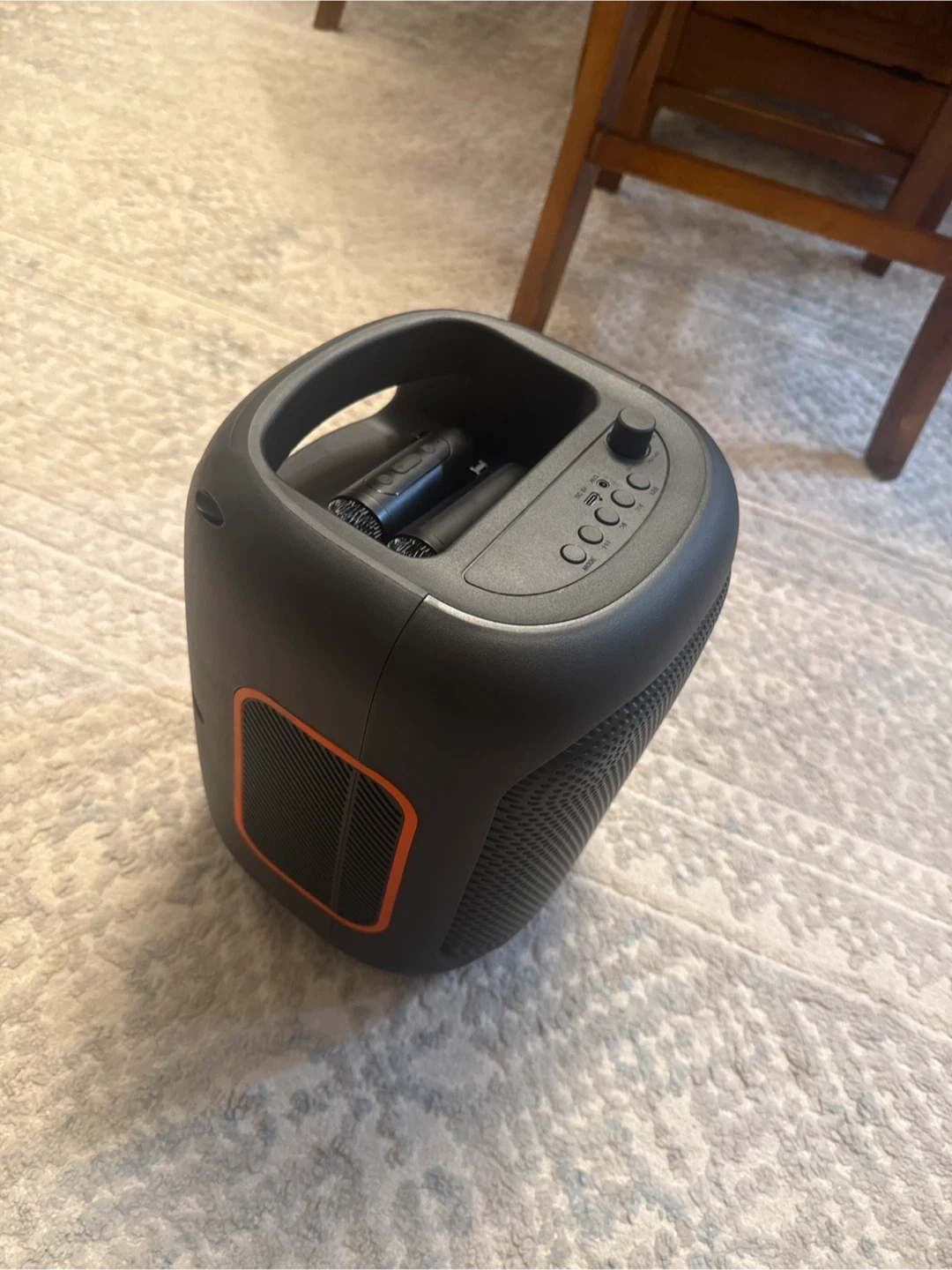 Selling a Bass Junk portable Bluetooth speaker! It's black with orange accents and has cool RGB lights that change color. It comes with the original box. Great for parties or just listening to music around the house