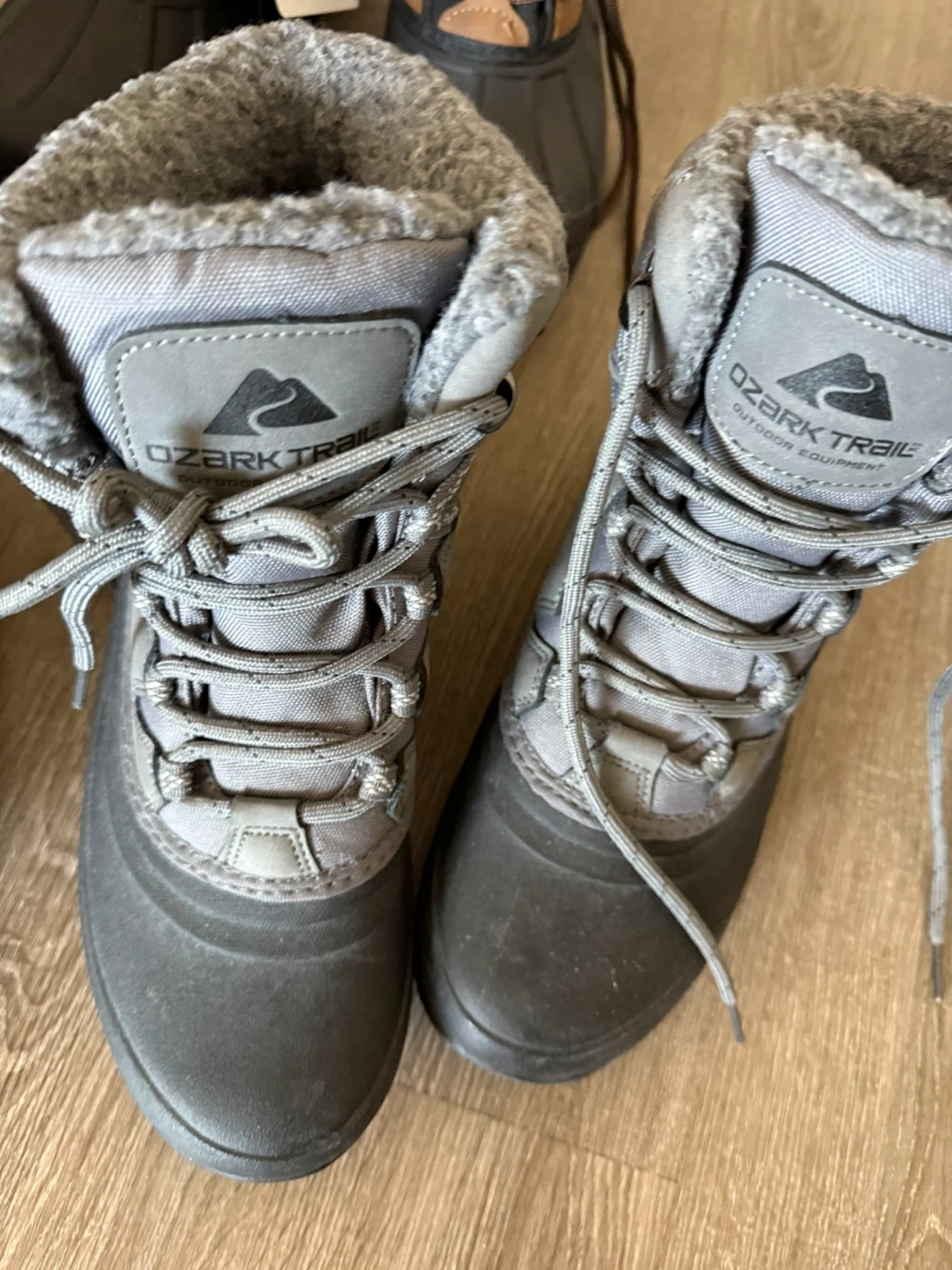 Selling a pair of Ozark Trail winter boots in size 8. They are gray in color and perfect for the Canadian winter weather!
