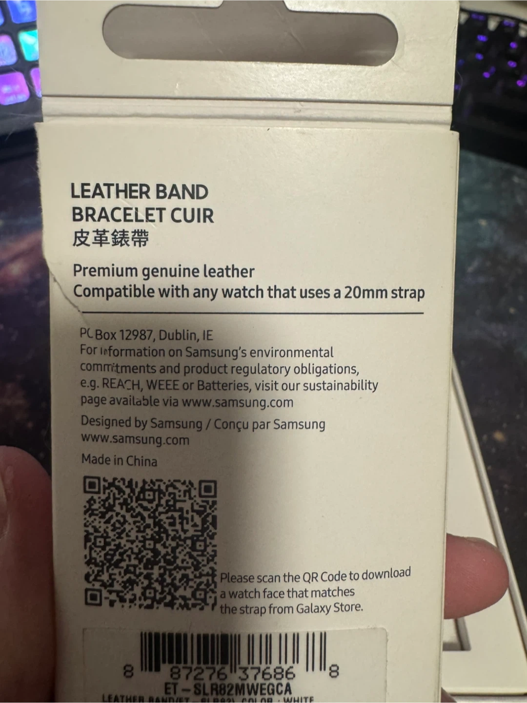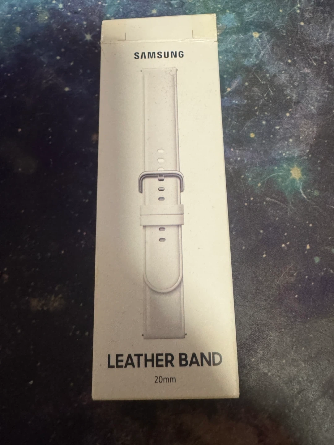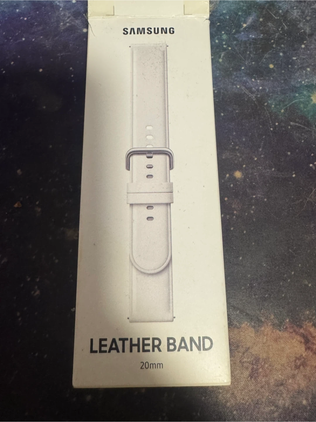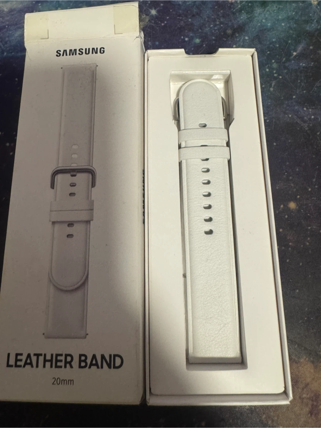 Selling a brand new Samsung leather band for your smartwatch! It's a 20mm white leather band. Compatible with any watch that uses a 20mm strap. Comes in the original box!