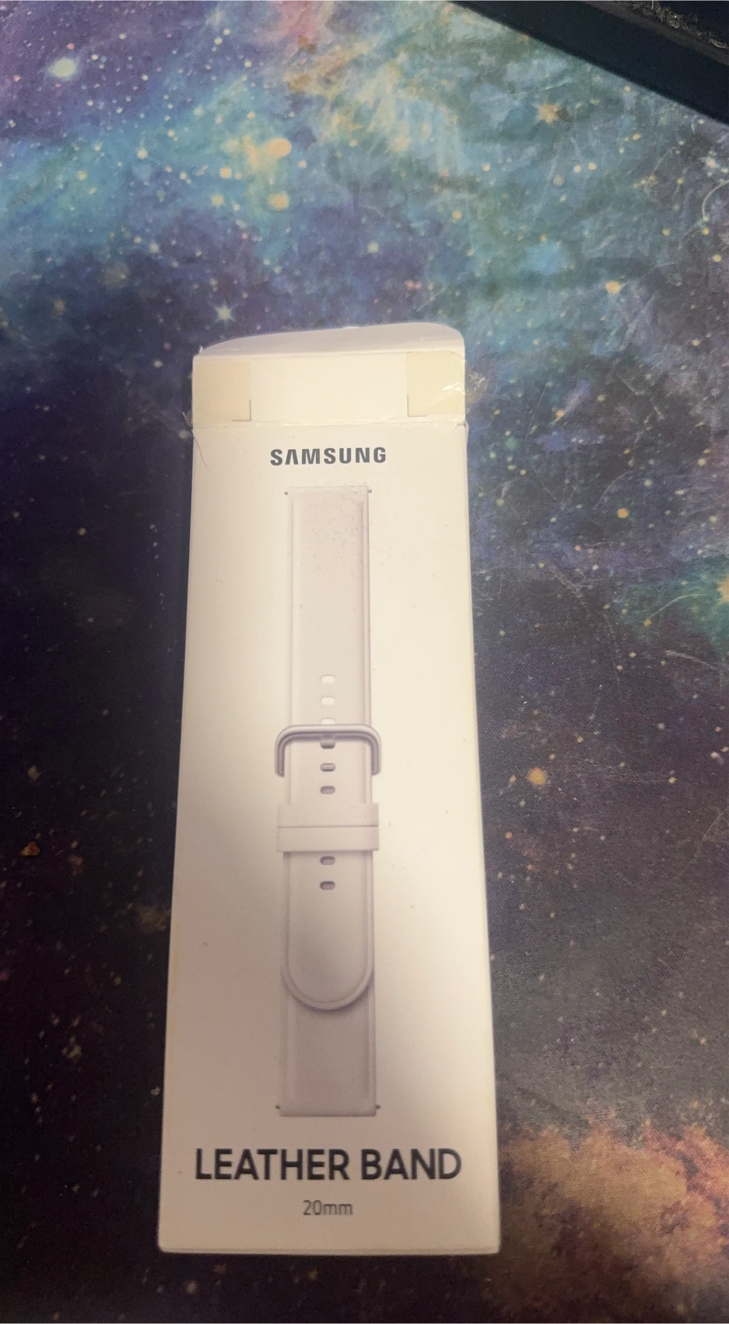 Selling a brand new Samsung leather band for your smartwatch! It's a 20mm white leather band. Compatible with any watch that uses a 20mm strap. Comes in the original box!