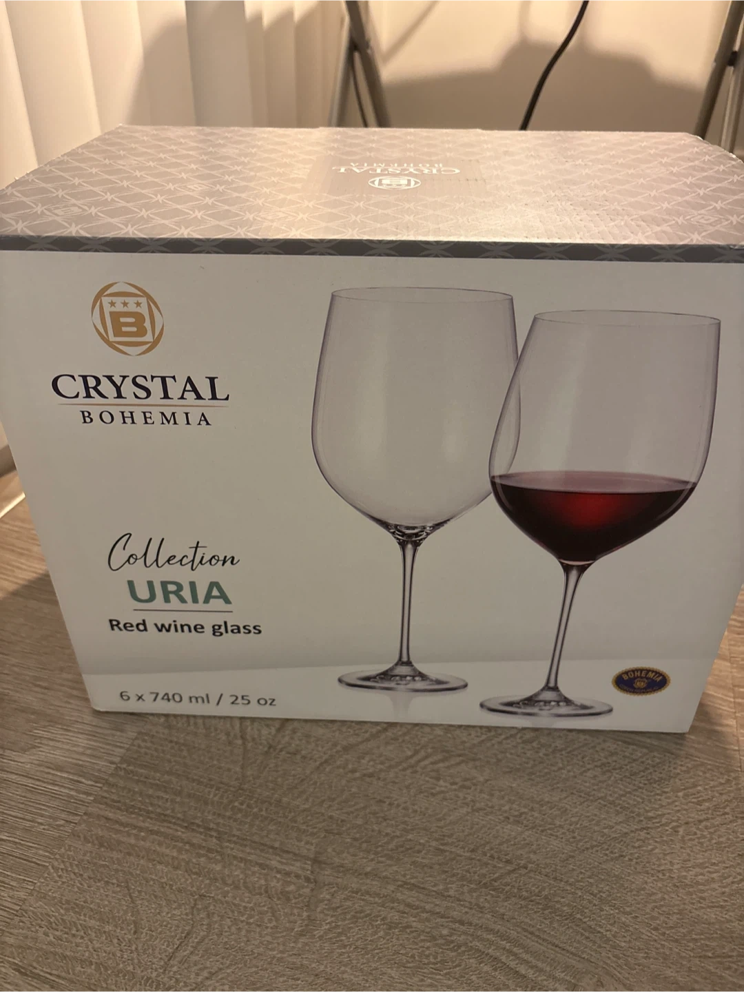 Selling a set of Crystal Bohemia Uria red wine glasses! This collection includes 6 glasses, each with a capacity of 740 ml or 25 oz. Perfect for enjoying your favourite red wine with friends and family