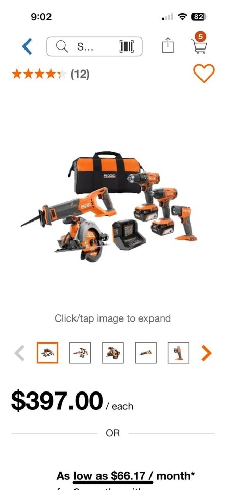 Buy & SellRIDGID 18V 5-Tool Combo KitRIDGID 18V 5-Tool Combo Kit$285RIDGID 18V Cordless 5-Tool Combo Kit with (2) 4.0 Ah Batteries, Charger, Tool Bag, and Accessories Model # R9635WHERE TO MEETCheck LocationView MapSELLERverifiedDaleWindsong782 reviews1 chats·0 favorites·37 viewsSEND CHAT TO SELLERHi Dale! I’m interested in your listing.Hi Dale! I’m interested in your listing.Get the Karrot app to chatSign In to chat