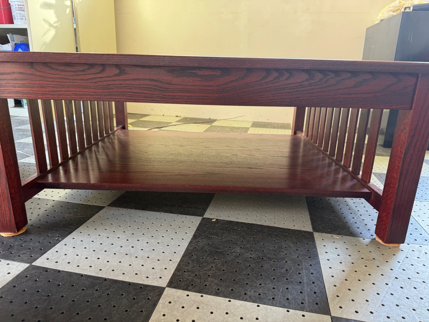 Selling a wood coffee table. It features a shelf underneath for extra storage. The table is in good condition and would look great in any living room!