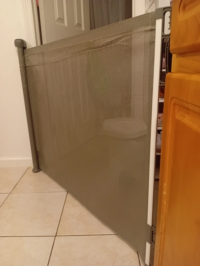 Selling a retractable baby -Pets gate. It's in great condition and ready to keep your little one safe! It's easy to install and use, height 33,85" width up to 55".