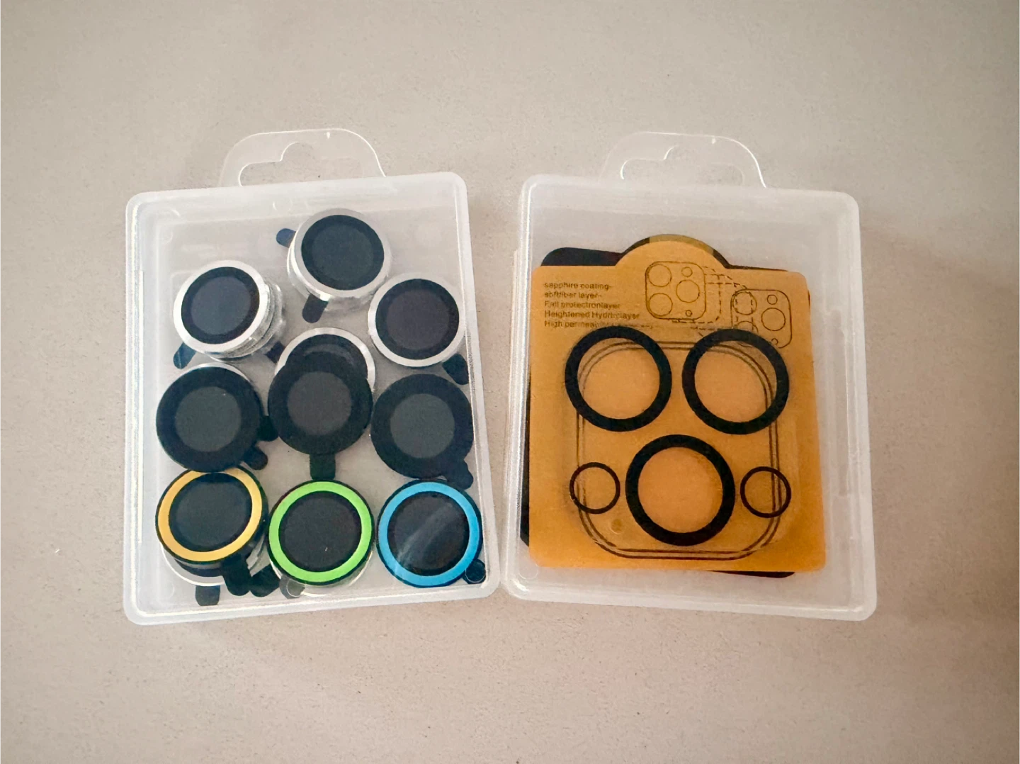 Selling 8 sets of iPhone 14 Pro Max camera lens protectors. They are brand new. Protect your iPhone camera lens from scratches and damage with these easy-to-install protectors.