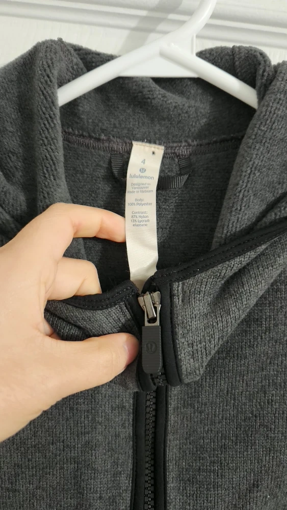 Selling a Lululemon hoodie in a lovely grey colour! It's a size 4 and made of a blend of polyester, nylon, and elastane. Great for layering or wearing on its own!