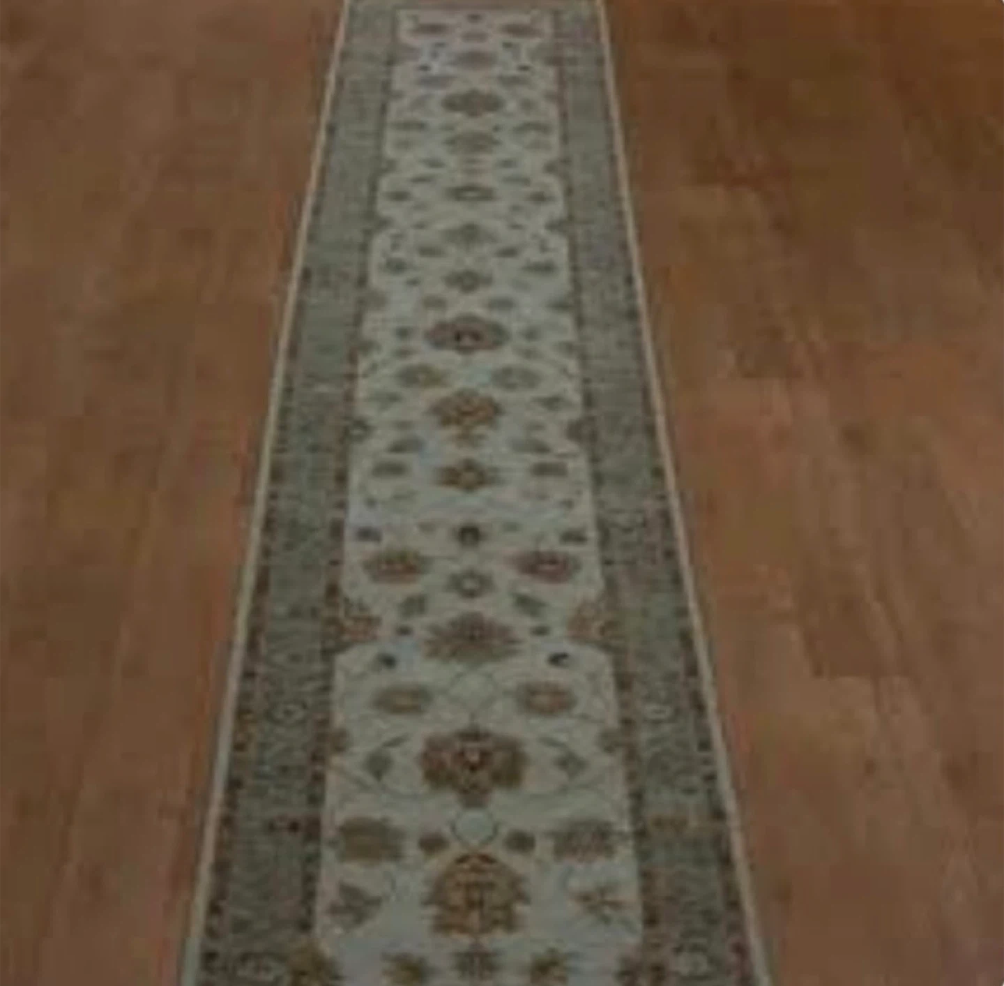 Here's a runner rug with a floral pattern, perfect for a hallway or entryway. It adds a touch of elegance to any space. In great condition and ready for a new home! No stains no damages