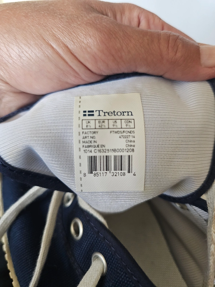 Selling a pair of Tretorn sneakers in navy blue! They're Brand new .. never worn ready for a new home. The size is US 9.5.