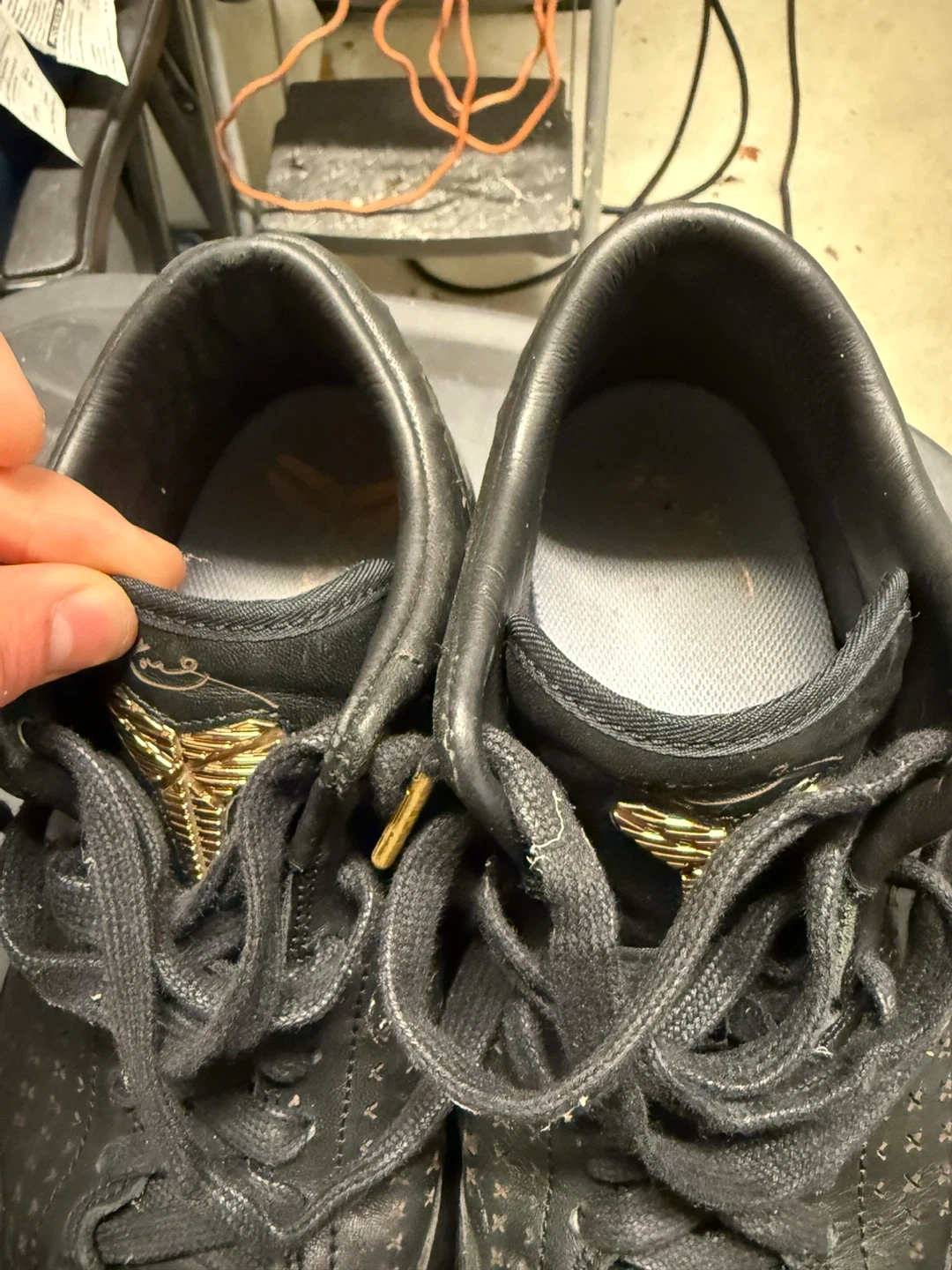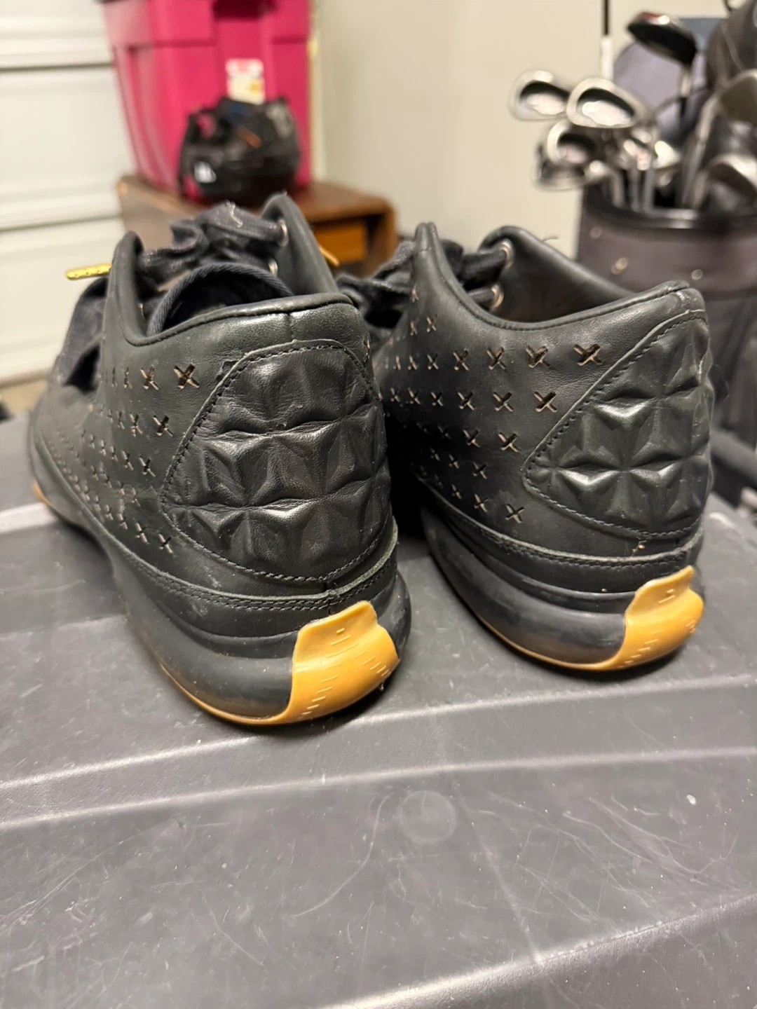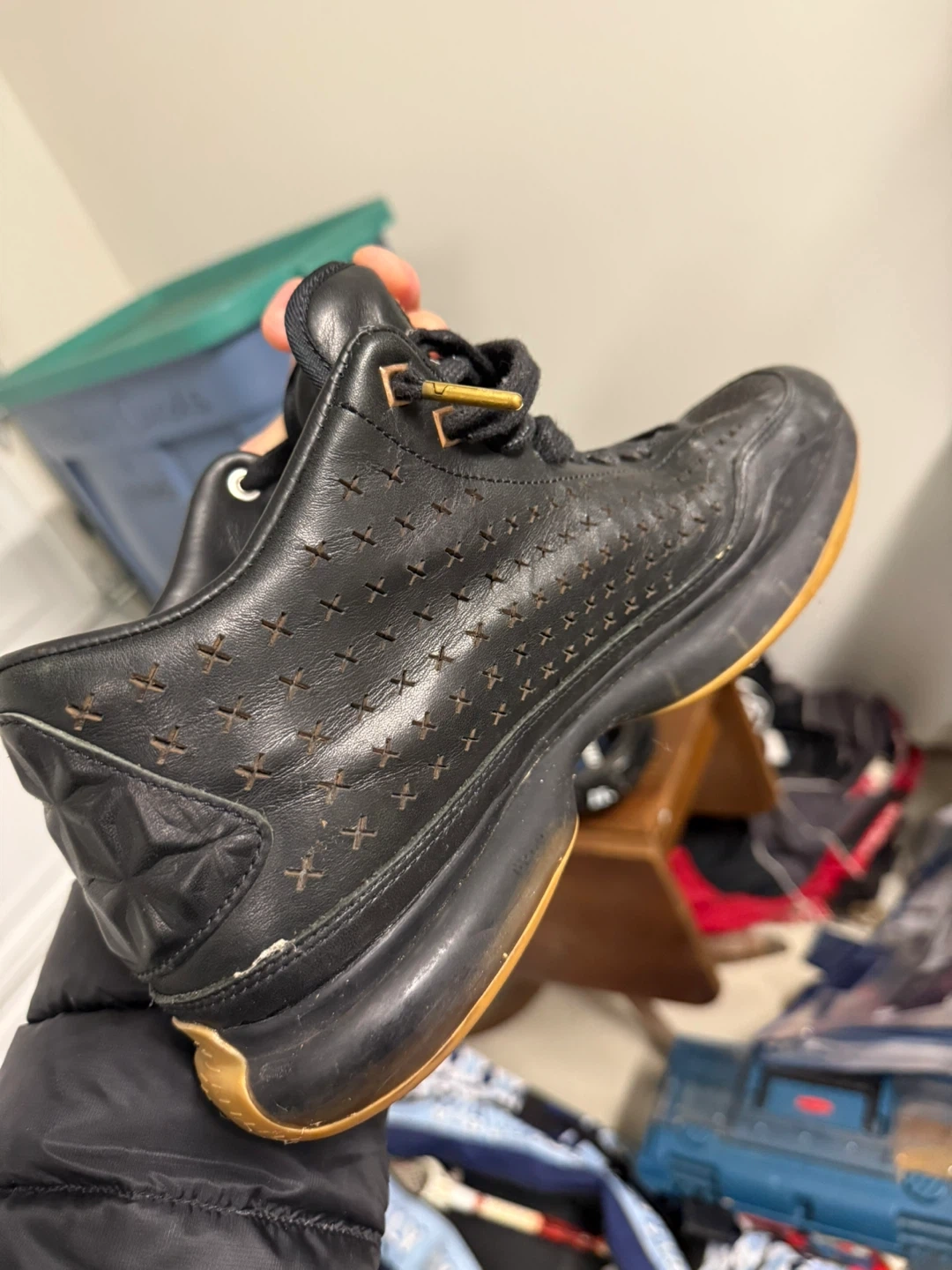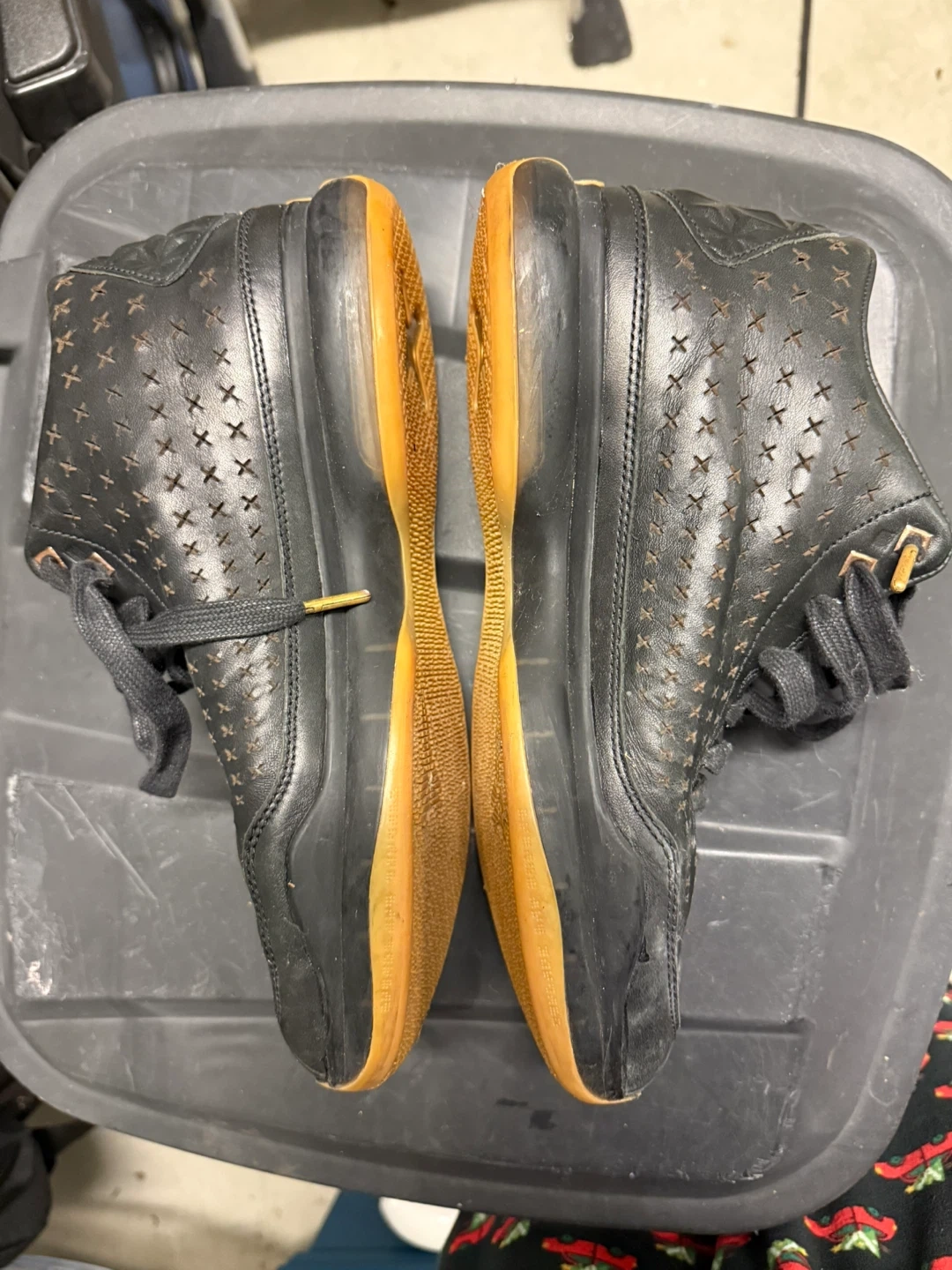 (Size 10) Selling a pair of Nike Kobe A.D. NXT basketball shoes! They have a unique design with a black upper and a gold-coloured sole. The shoes show some signs of wear, but are still in good condition for playing ball or casual wear