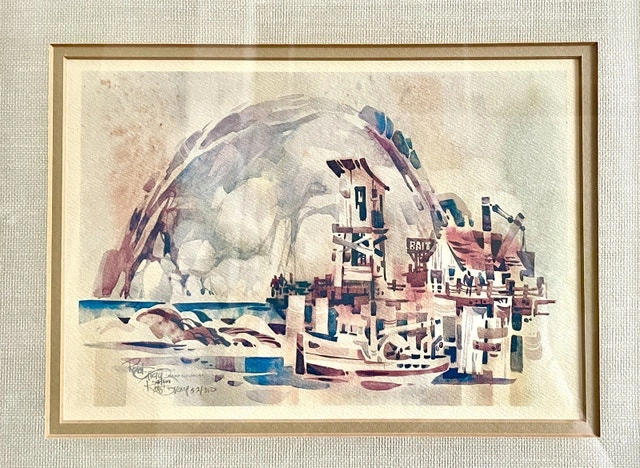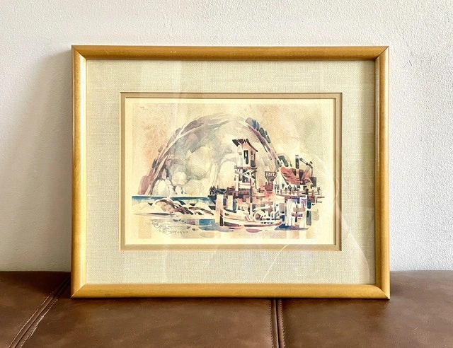 Vintage lithograph watercolor painting Title: Shrimp Elevator Signed by the artist: Robert Gray Numbered 52/350 Frame: 15” X 12” Excellent condition