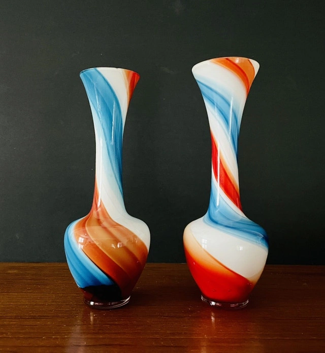 Buy & SellMid Century Glass Bud VaseMid Century Glass Bud Vase$150Mid century glassware Glass Bud vases. They stand 8” tall. Excellent condition and striking Blue/Red/White stripedWHERE TO MEETCheck LocationView MapSELLEREagle HuangMarkham Village191 review0 chats·0 favorites·3 viewsSEND CHAT TO SELLERHi Eagle Huang! I’m interested in your listing.Hi Eagle Huang! I’m interested in your listing.Get the Karrot app to chatSign In to chat