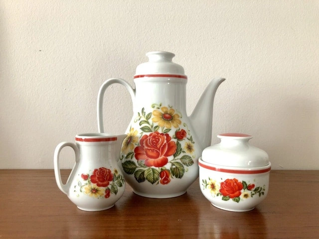 This set includes: 1 X Tea Pot, 1 X Sugar Jar, 1 X Creamer, 11 X Tea Cups, 12 X Tea Cup Saucers. Excellent condition. No chips or damages. Price is firm.