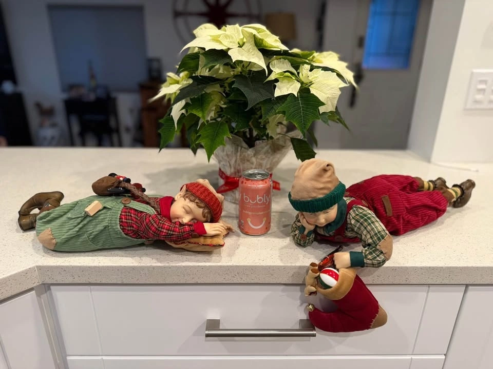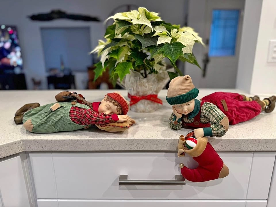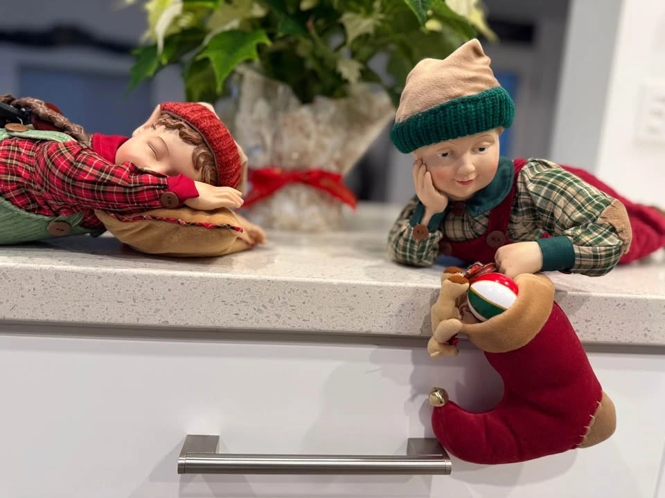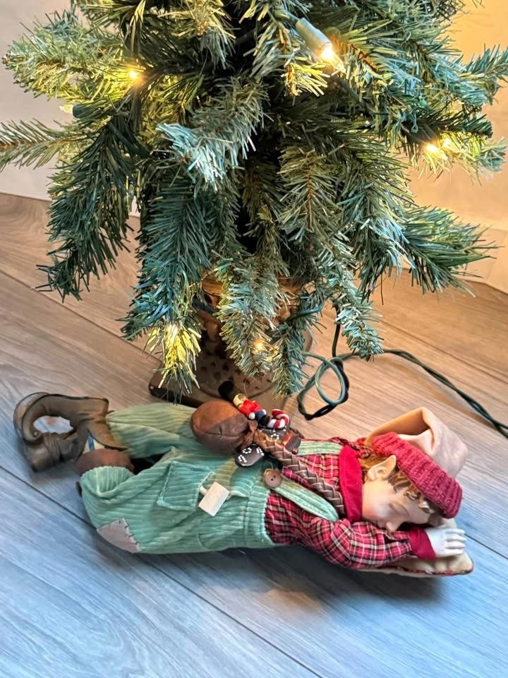 Gorgeous Pair of Napping Christmas Elves in pristine condition.