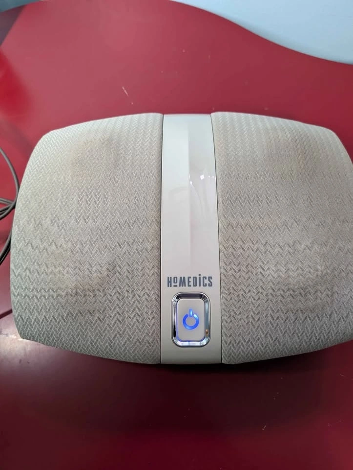 Downsizing, this is too big to take with us so we are selling a shiatsu foot massager. Two settings one with and one without heat. Works perfectly. Used only a few times. No wear on the cloth. It was always stored in the original box. Check photos for more details