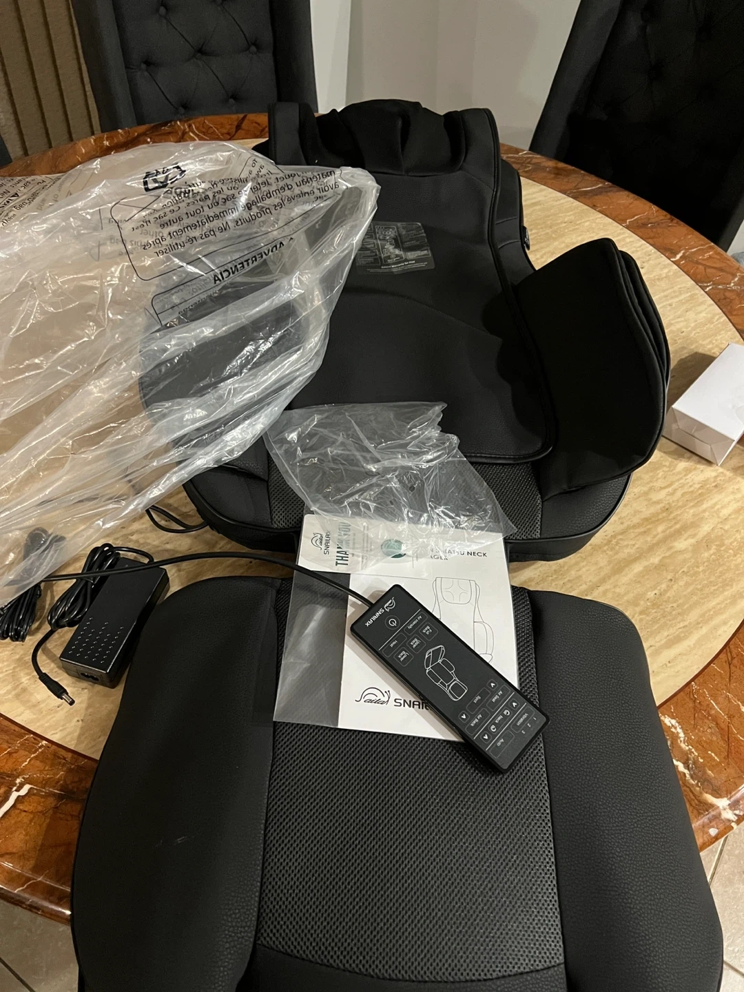 Selling a Snailax Shiatsu Neck and Back Massager with Heat Compression! It's in great condition and includes the remote and power adapter. Originally bought for $298.99. This massager features an ergonomic S-Curve design for better back support, targeting the neck, shoulders, back, waist, and thighs.