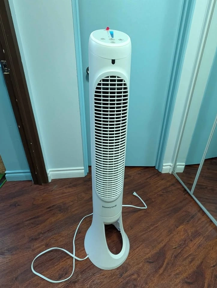 Selling a Honeywell tower fan due to downsizing. It is remote controlled and works as good as new. It's slim in size and great for circulating the air. It stands 101 cm ( 39.75 inches tall and the diameter is 12 cm (4.5 inches). Sorry no box.