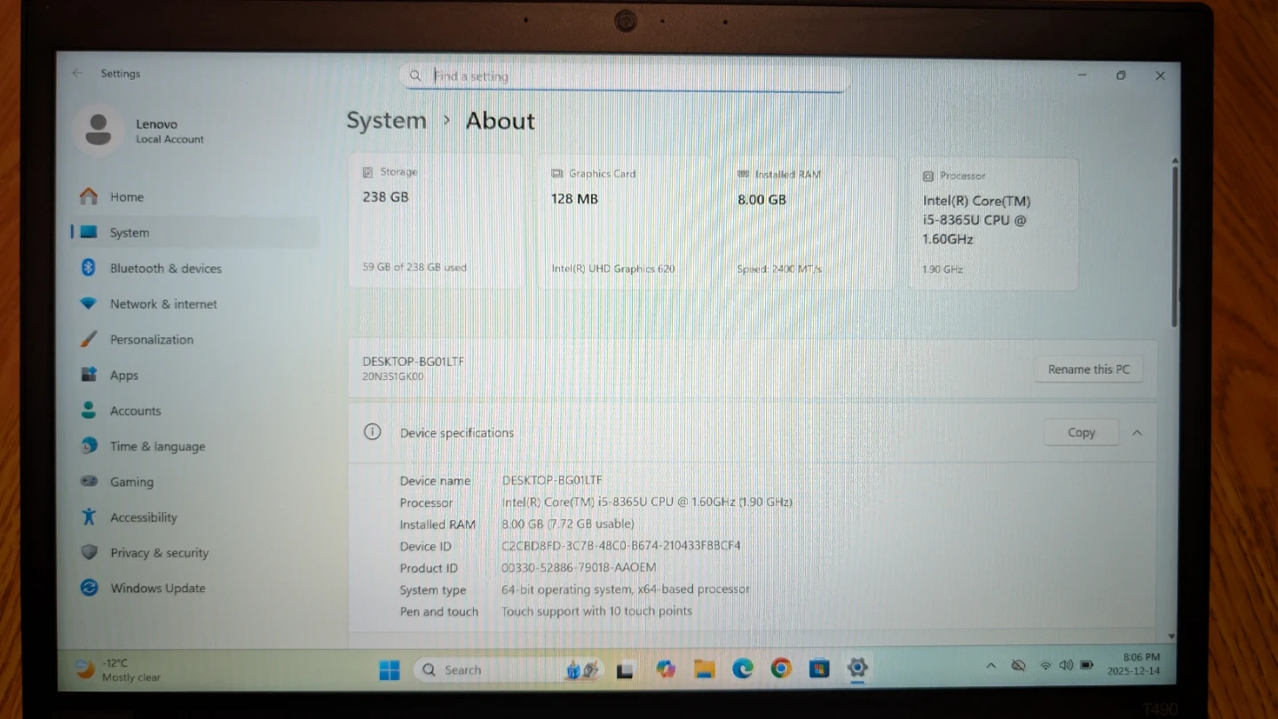 Lenovo ThinkPad T490 – Touchscreen | 256GB SSD | 8GB RAM | Windows 11 Pro + Office 2021
