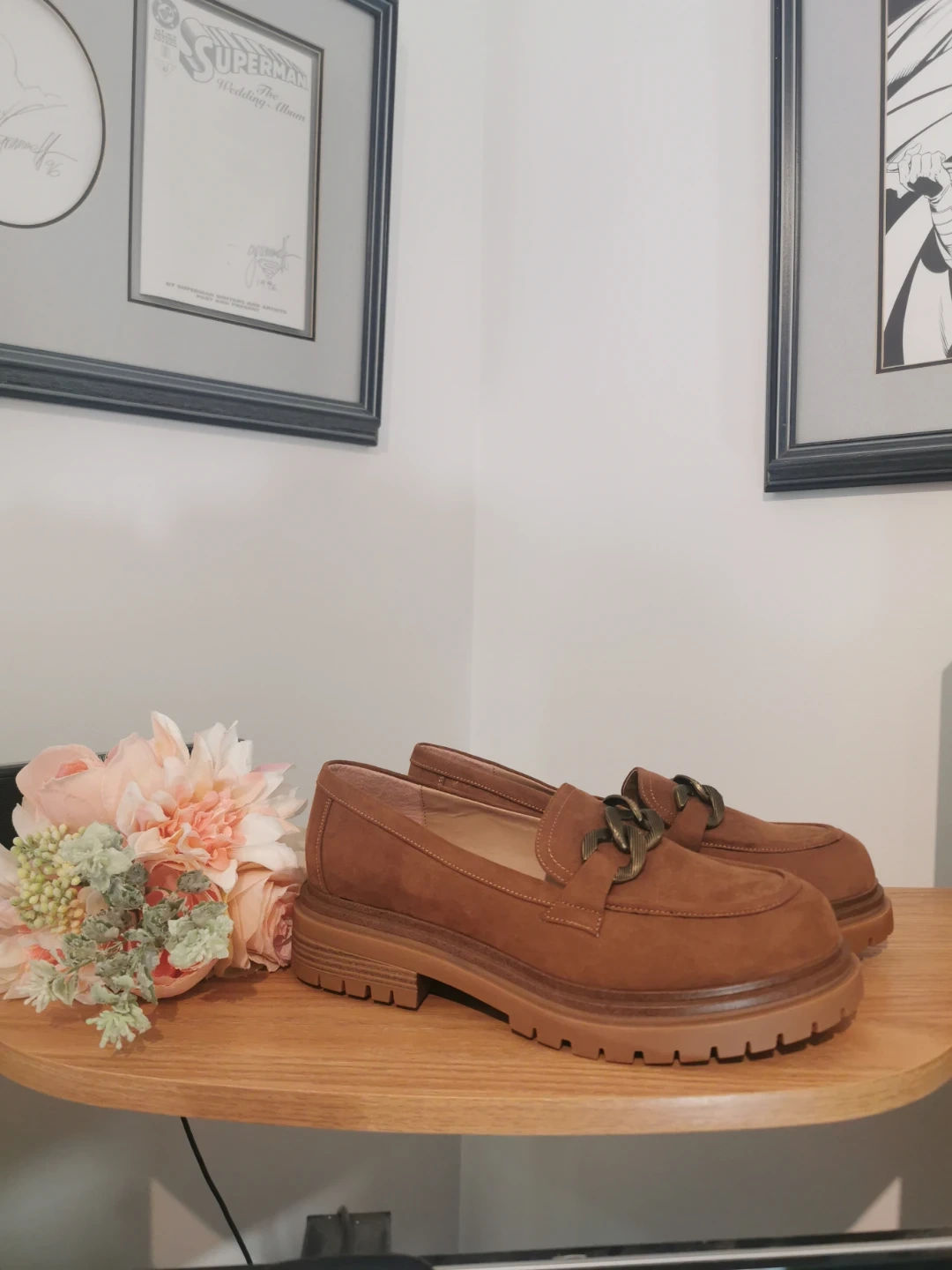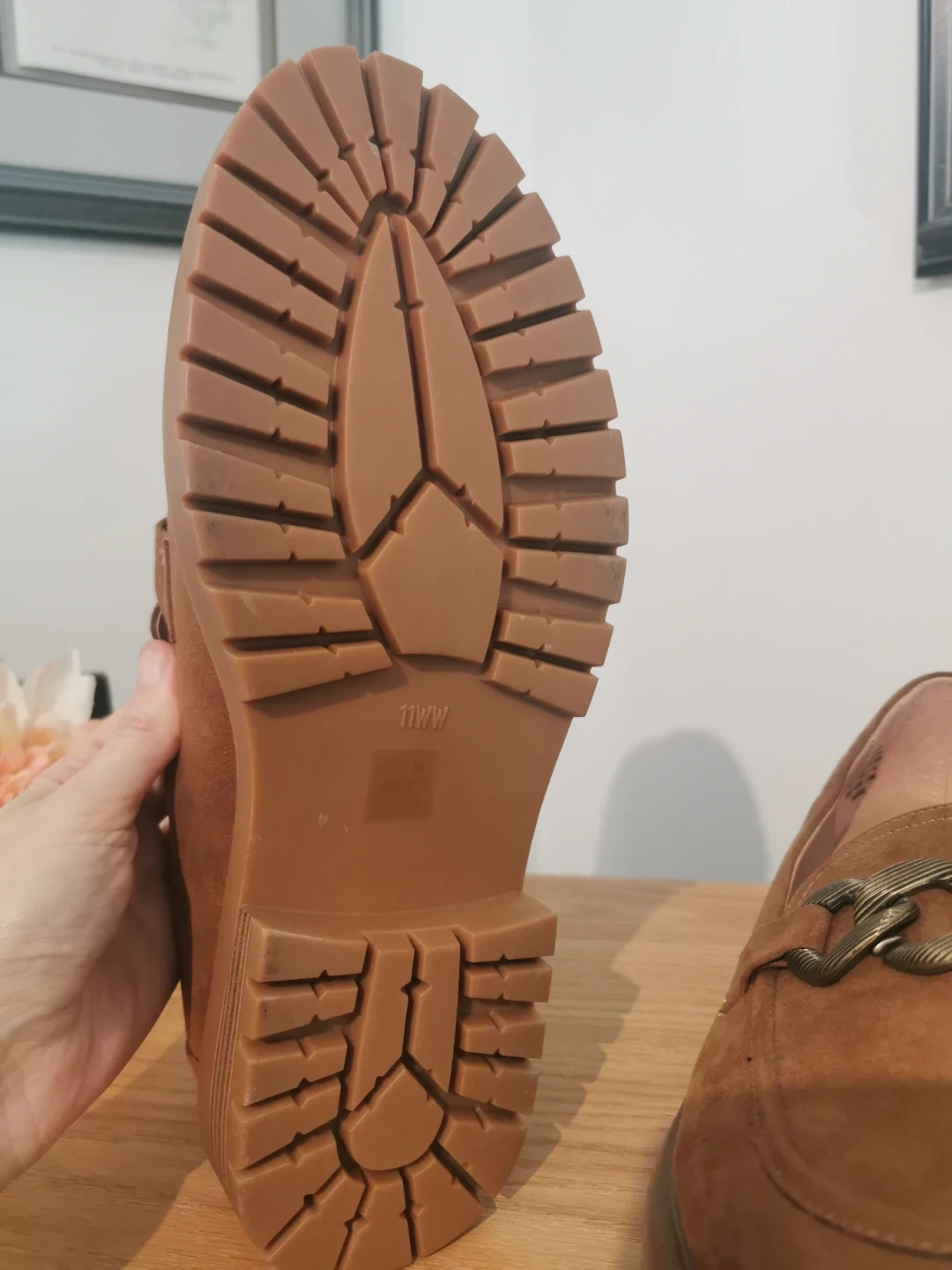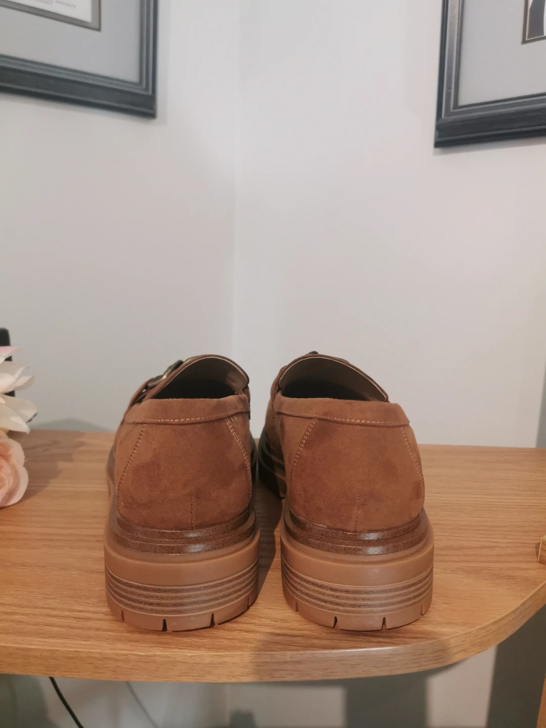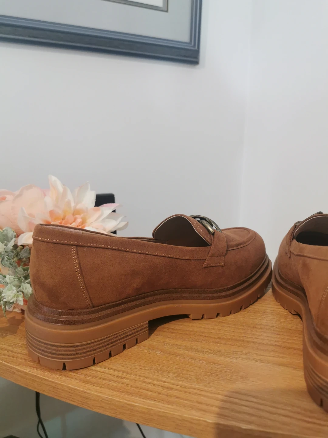 Selling a pair of brown suede loafers! They are in great condition and would be perfect for everyday wear. The shoes are a lovely brown colour and feature a chain detail on the front. These loafers have