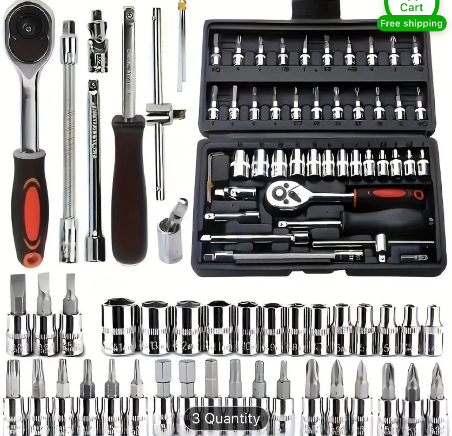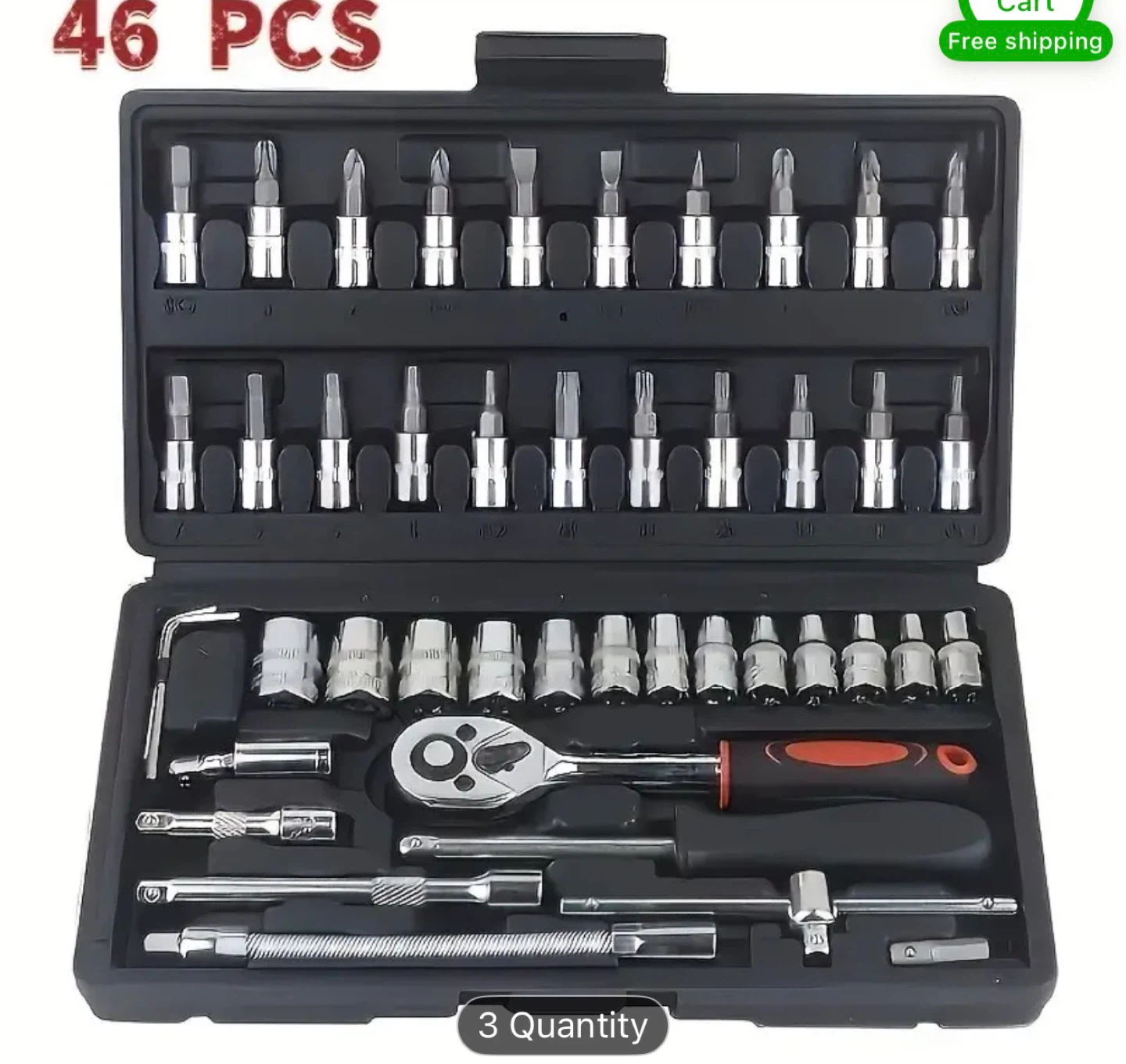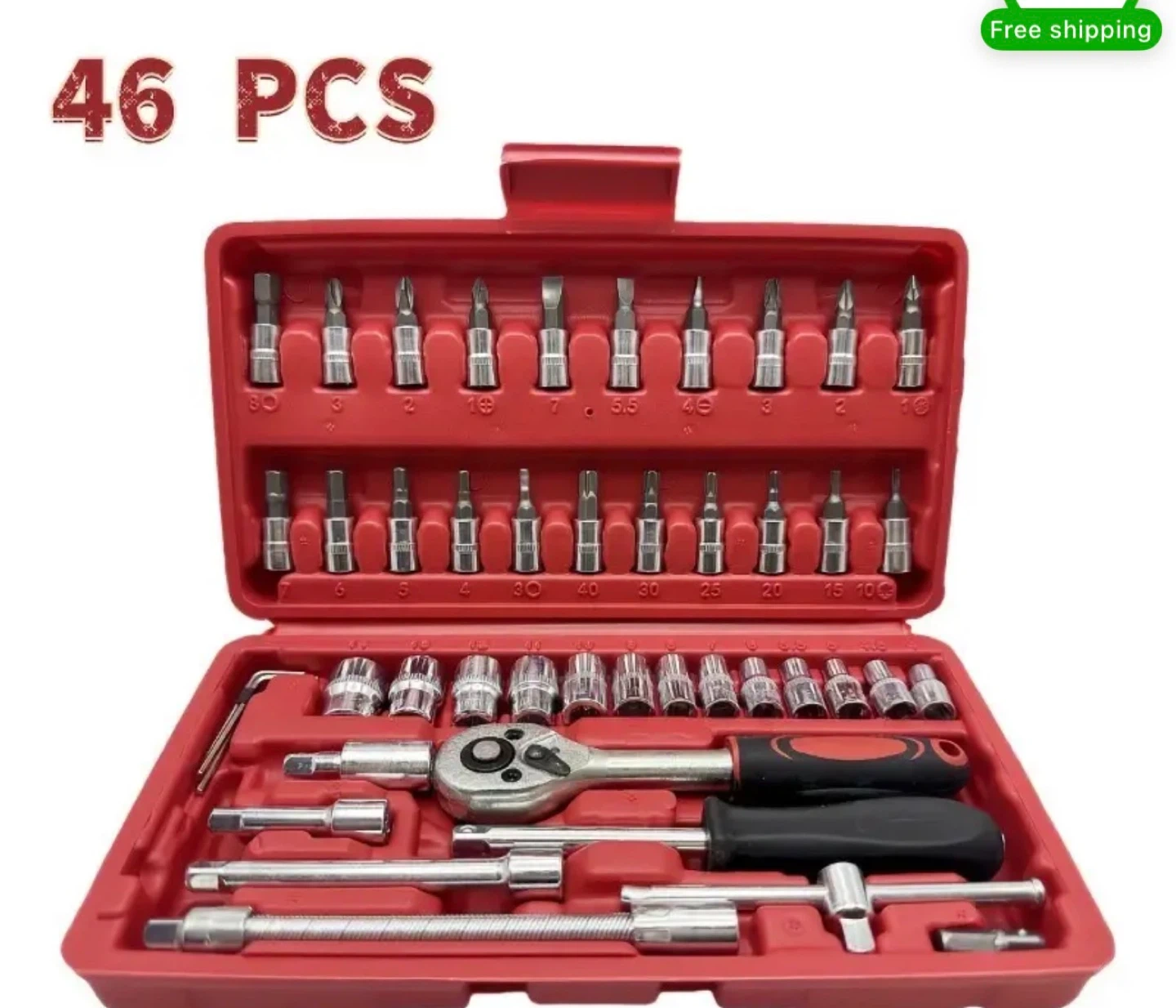 Selling a brand new 46-piece socket wrench tool set! It includes various sockets, screwdriver bits, and a ratchet wrench, all neatly organized in a compact case. Perfect for any DIY enthusiast or professional looking for a versatile and complete tool kit