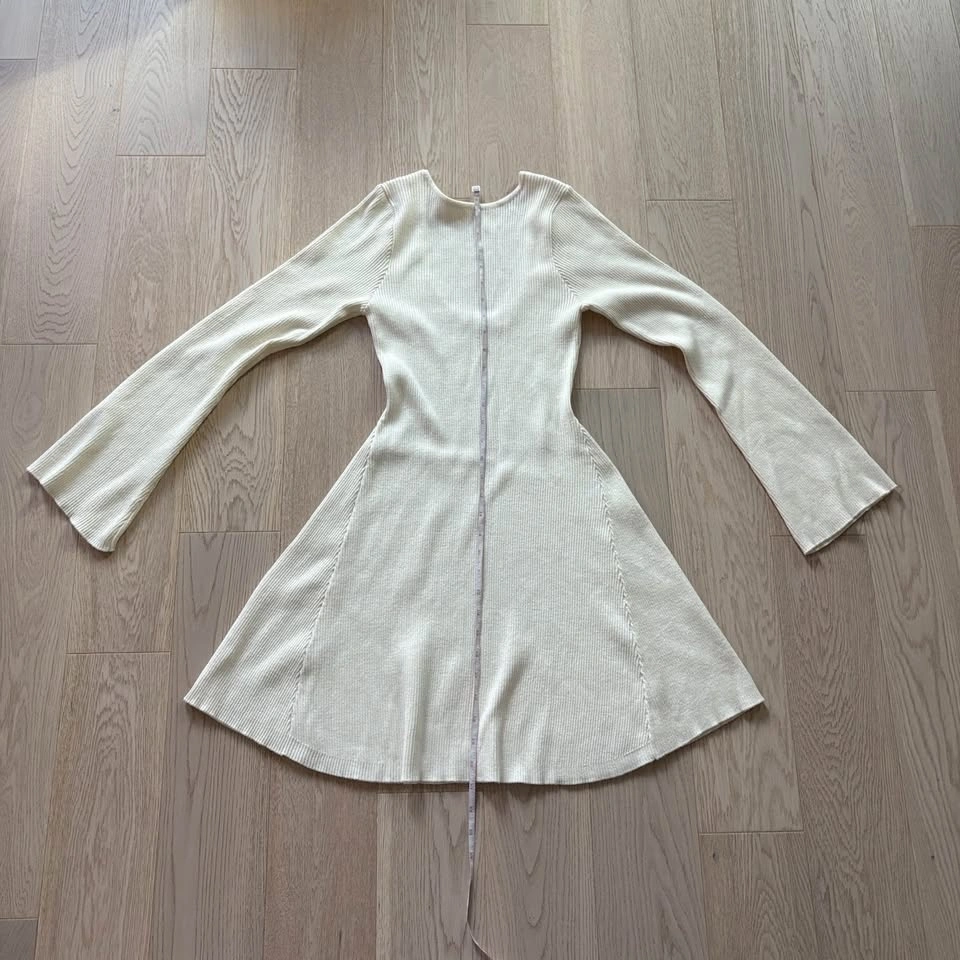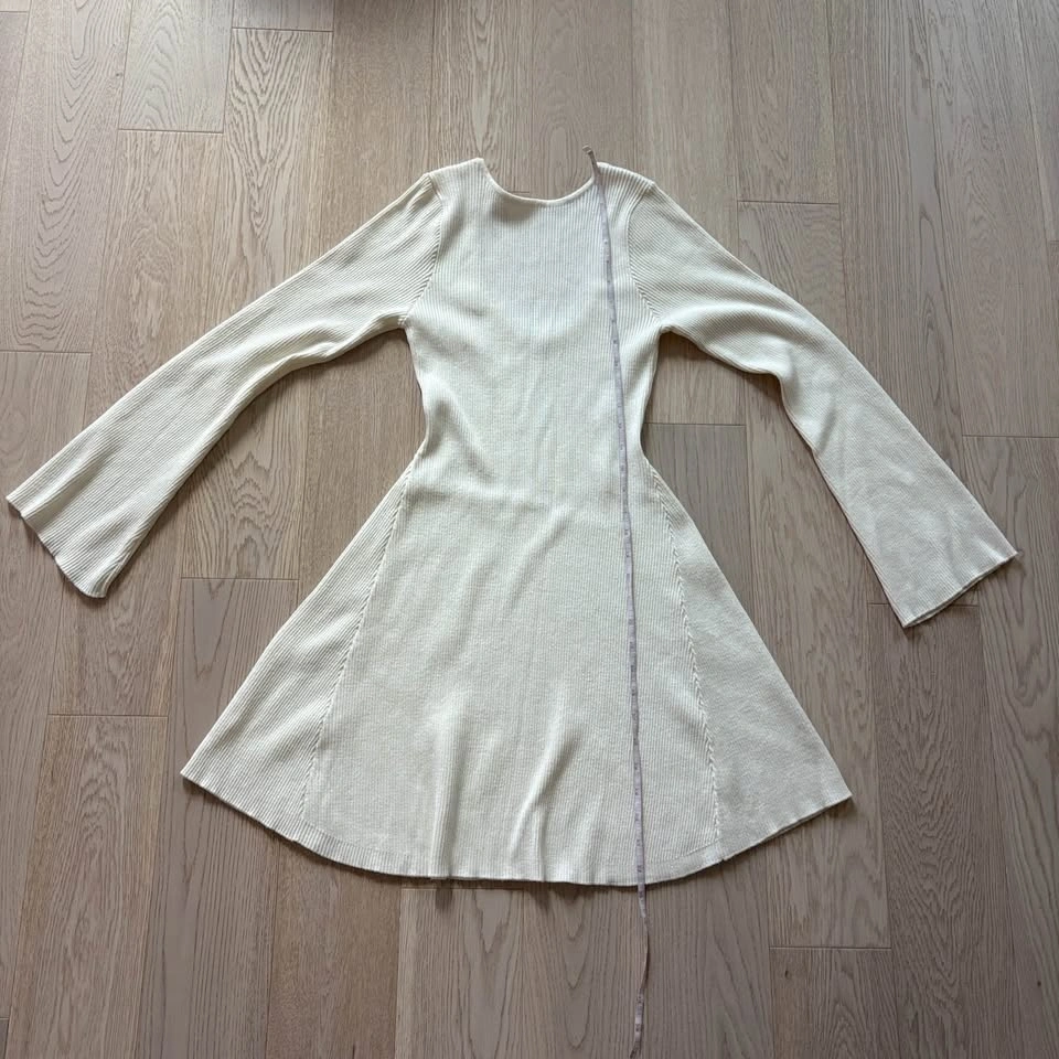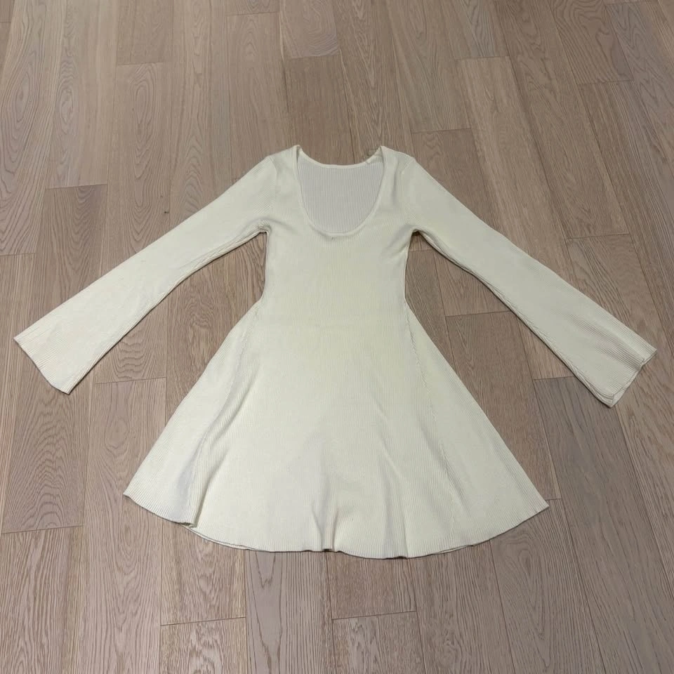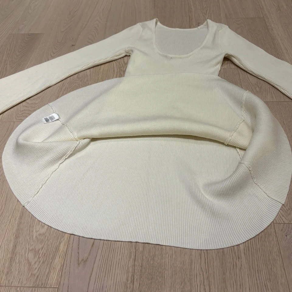 Ardene Ribbed Cream White Long-Sleeve Dress - Medium