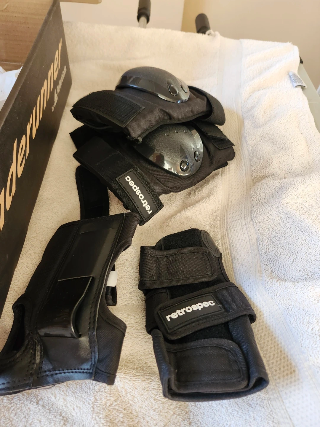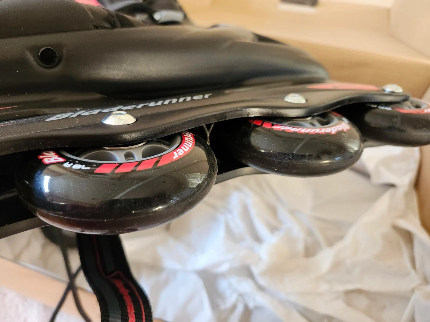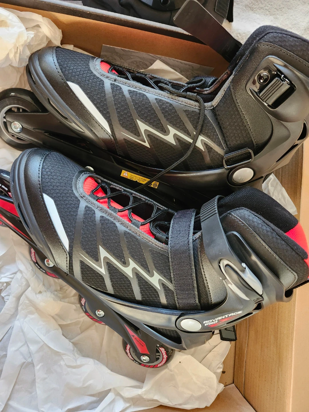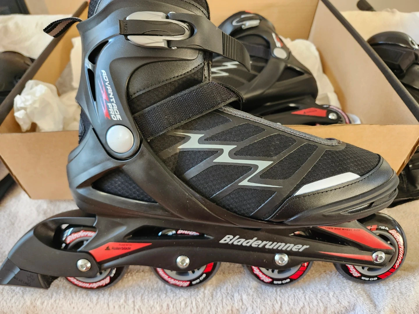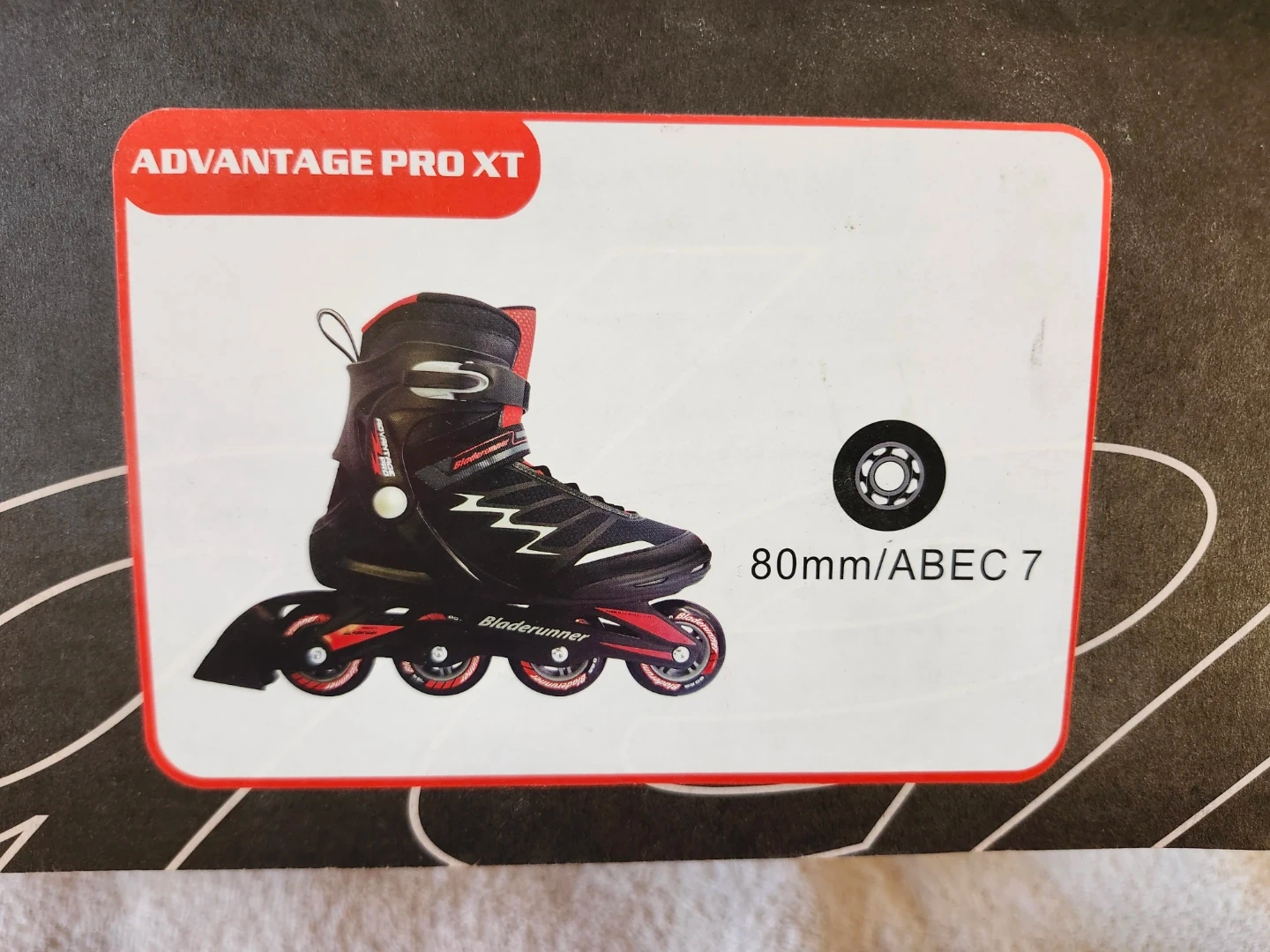 Selling a pair of Bladerunner Advantage Pro XT inline skates! They come with Retrospec knee pads. The skates are black with red and white accents and have 80mm/ABEC 7 wheels. Comes with the original box!