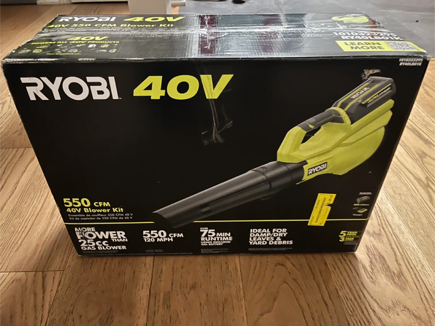 Selling a brand new RYOBI 40V 550 CFM Blower Kit! It's still in the box and ready for use. This blower has more power than a 25cc gas blower and is ideal for both damp and dry leaves and yard debris. It can run for over 75 minutes using the included 4Ah battery