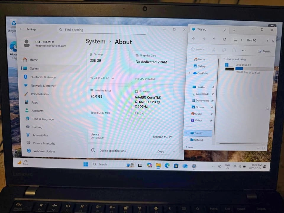 💻 Lenovo ThinkPad Laptop – i7 • 20GB RAM • 238GB SSD • Windows 1