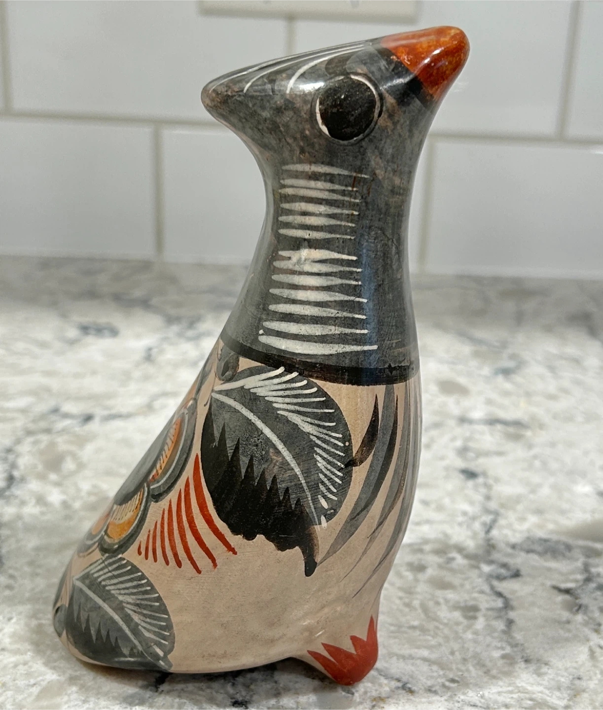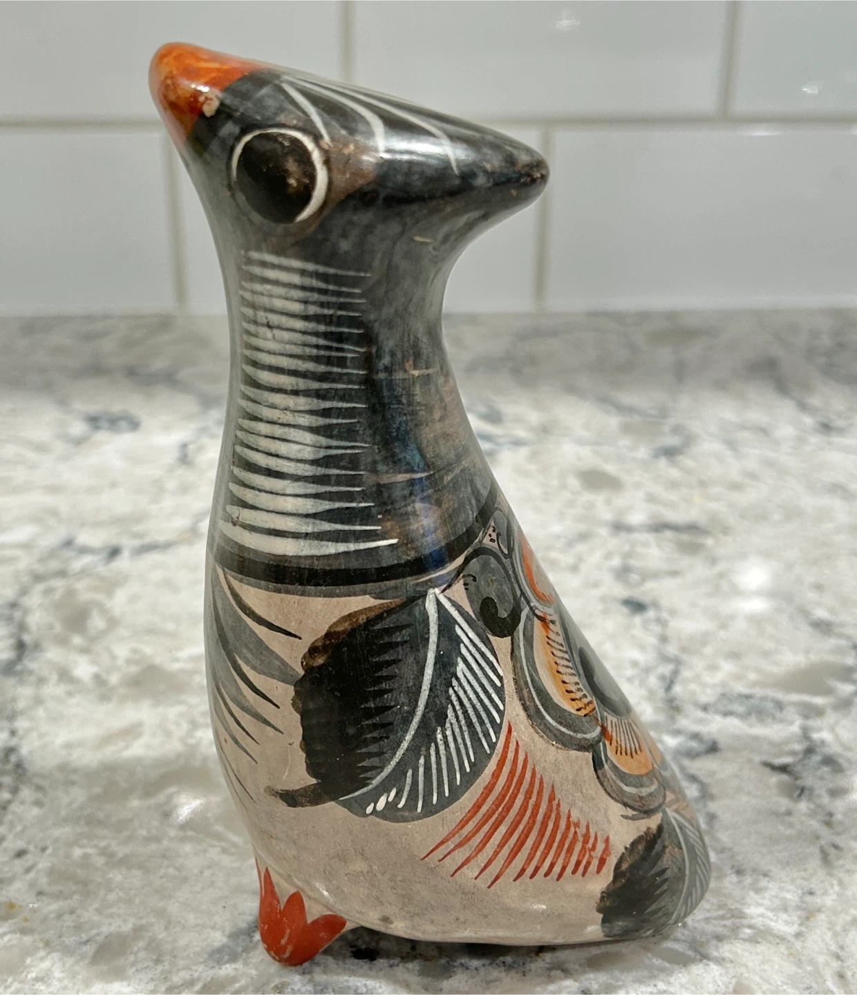 Unique hand-painted pottery bird figurine.