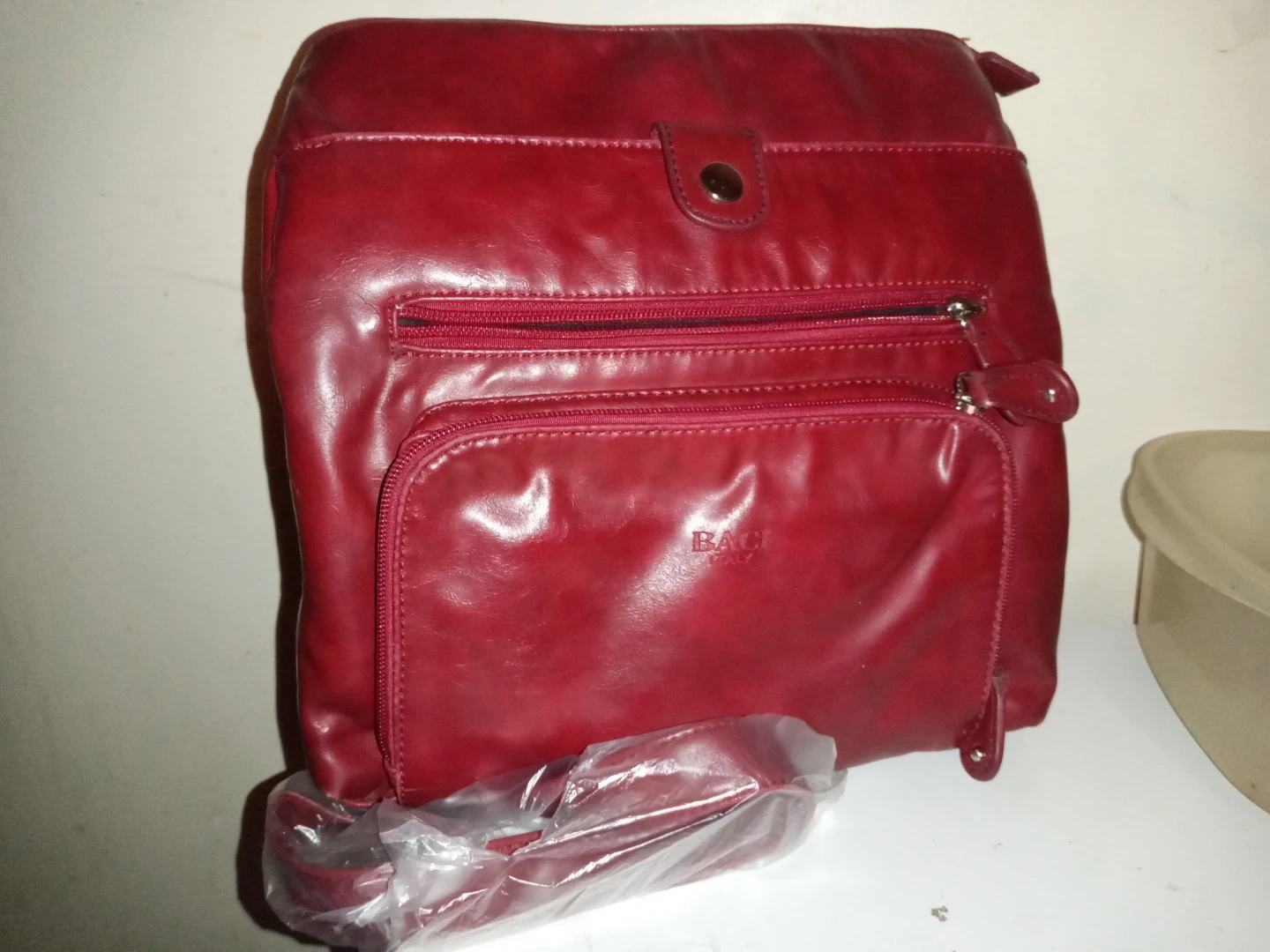Here's a stylish red leather shoulder bag from Baci Italy! It's in great condition and ready for a new owner. The bag features a zippered top and a front pocket for easy access to your essentials. Perfect for everyday use!