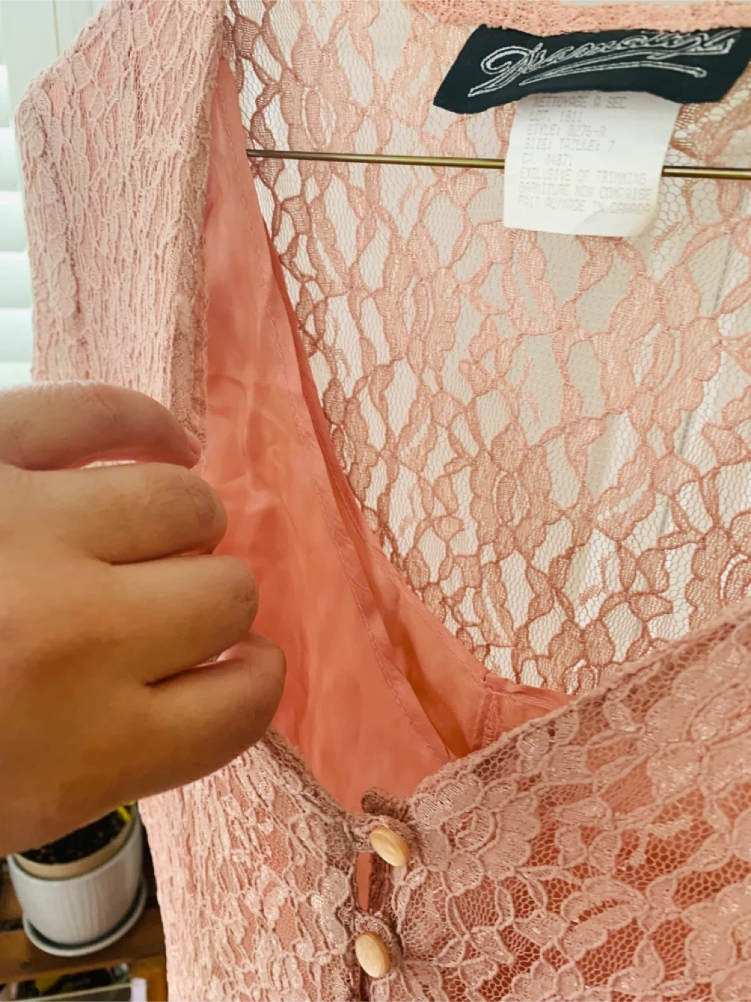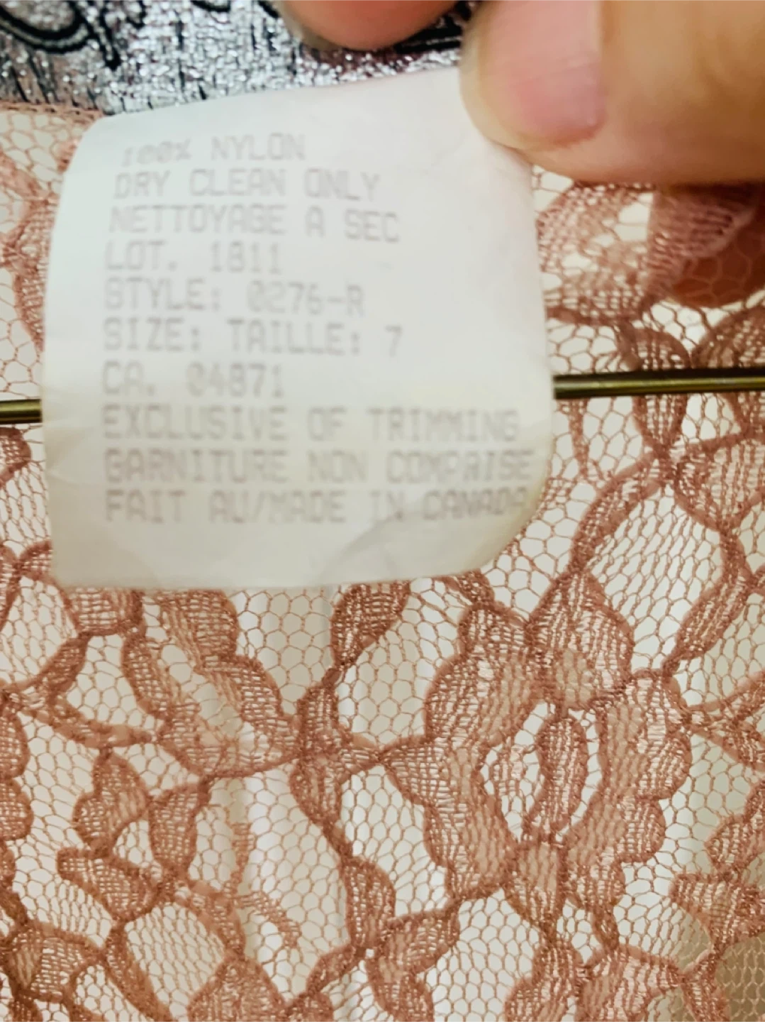 Full-length (long) dress. Size 7. Peach colour with separate inside lining. Selling for $25 CAD firm. Smoke Free Home.