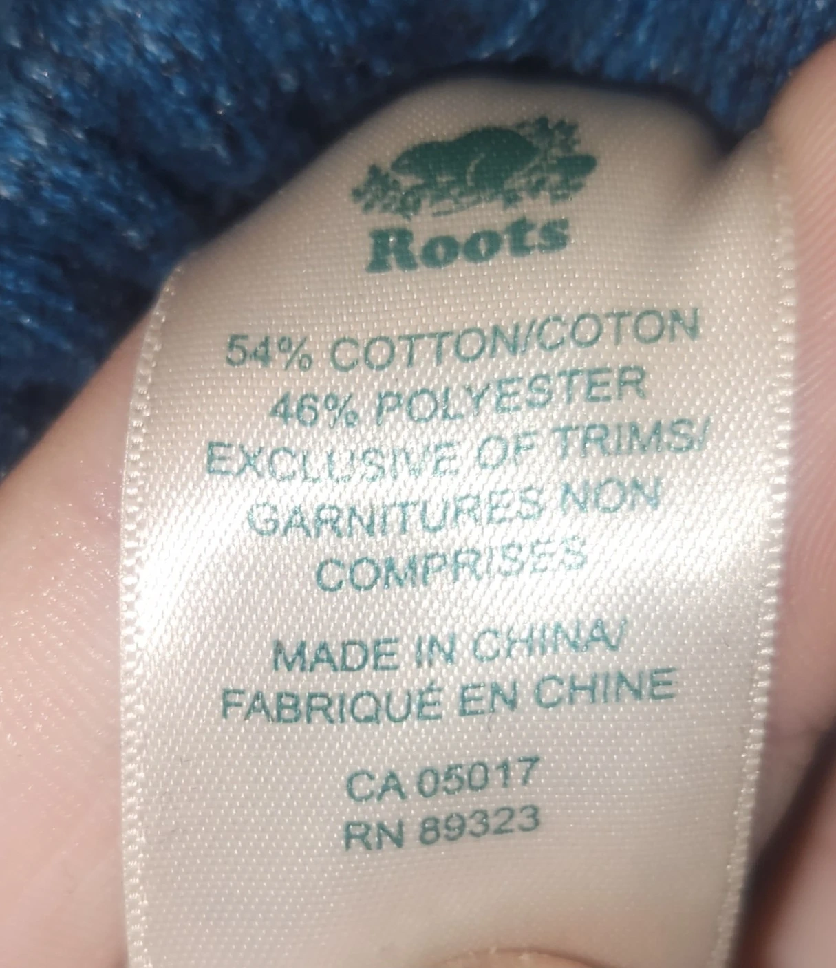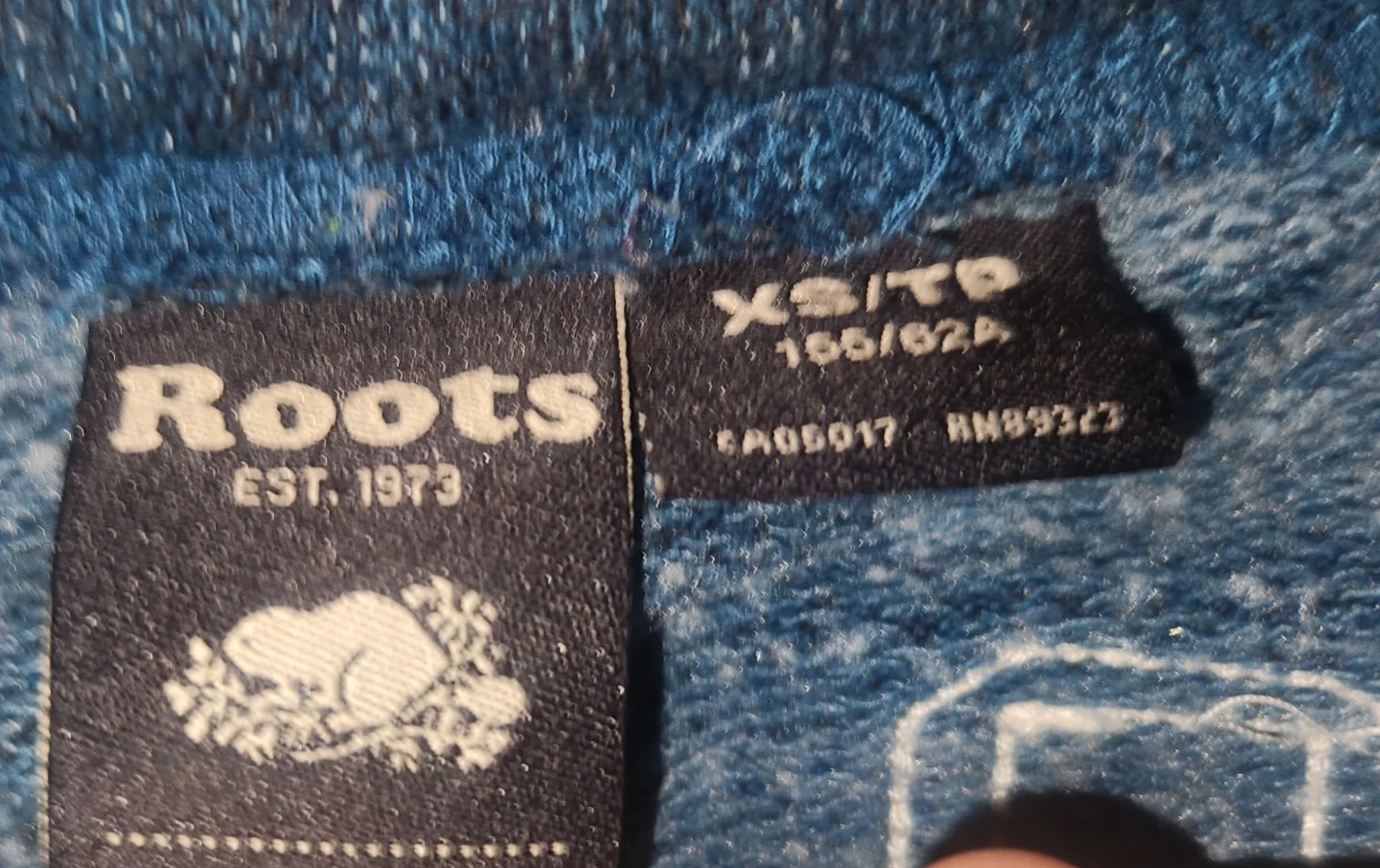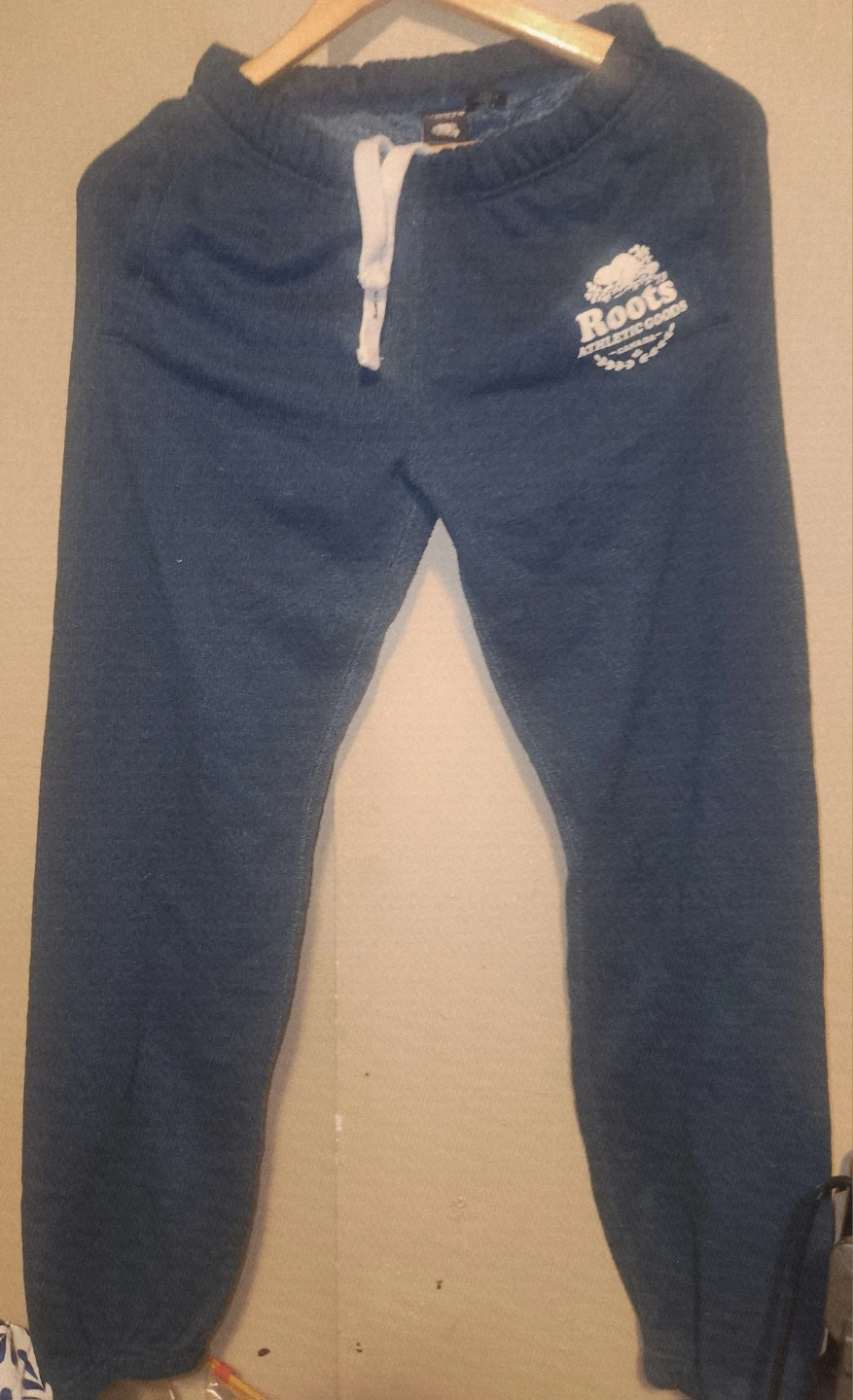 Selling a pair of Roots Athletic Goods sweatpants in blue. They are size XS and made of 54% cotton and 46% polyester. Pick up only unless within walking distance from near intersection of Oxford and Gammage Street.