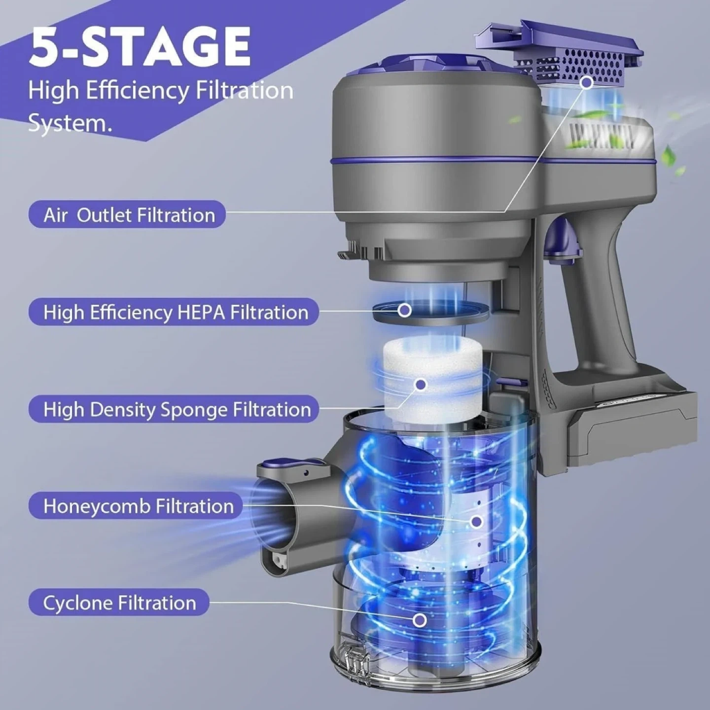 - 5-stage high efficiency filtration system