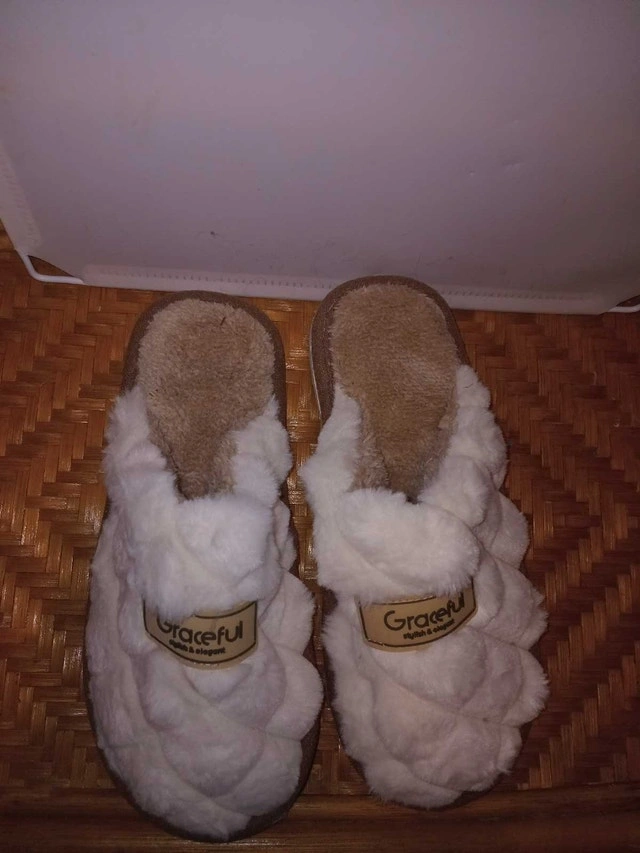 Treat your feet to the ultimate comfort with these Graceful slippers, designed for a stylish and elegant lounging experience. These slippers feature a plush, cozy interior and a quilted, soft exterior, perfect for keeping your feet warm and relaxed. These slippers are in used condition, showing minor signs of wear but maintaining their overall comfort and appeal. Features: * Soft, quilted exterior * Plush, cozy interior The average price for similar slippers is $20. Given the good condition, these are priced at $10 If this ad is still up, then yes, these slippers are still available!