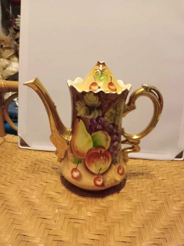 This is a used Colton China teapot, a delightful piece for any collector or tea enthusiast. The teapot features a beautiful fruit design, adding a touch of elegance to your tea time. Please note that it is in used condition.