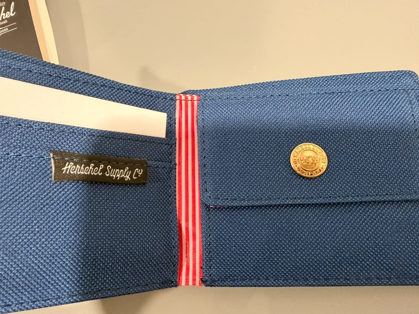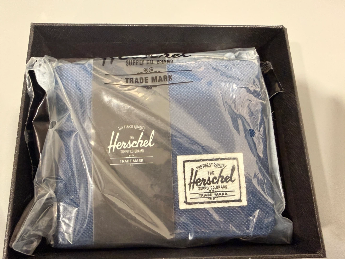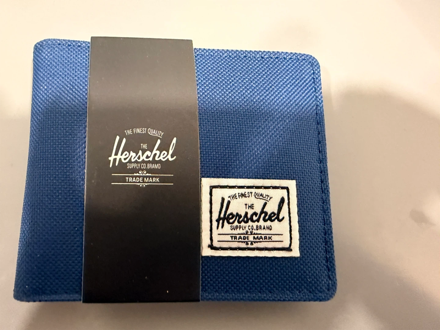 This is a brand new Herschel Supply Co. wallet in a nice blue colour! It comes in its original box and packaging, so it's perfect as a gift for someone or just for yourself. It's a great little wallet for everyday use