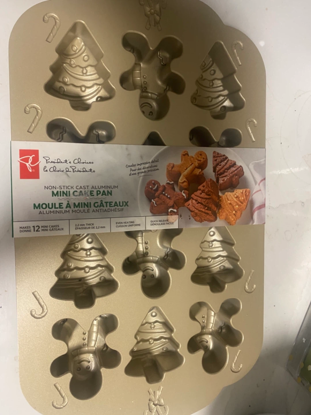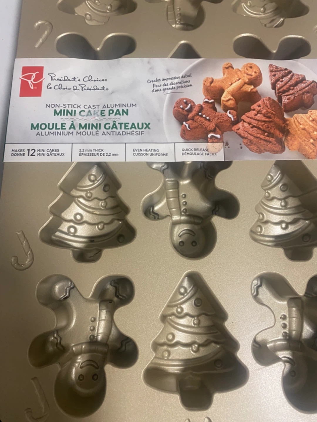 I'm selling a brand new President's Choice non-stick cast aluminum mini cake pan! It makes 12 mini cakes and has even heating for uniform cooking. Perfect for holiday baking!