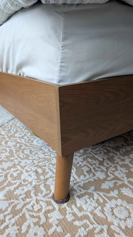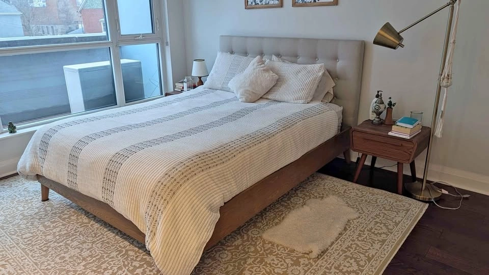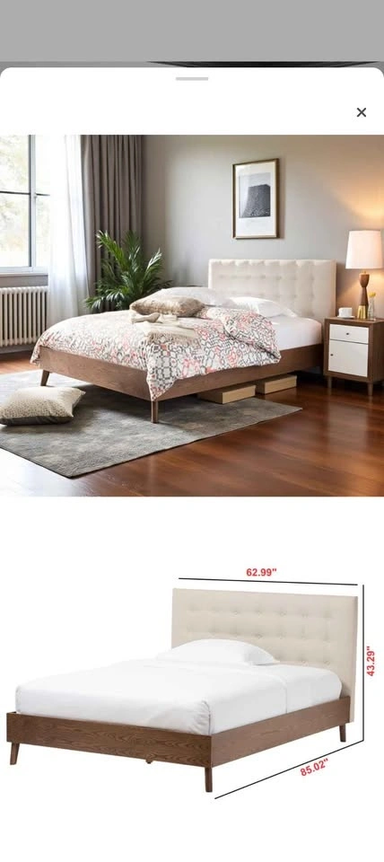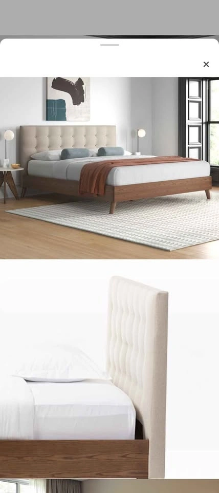 Serious inquiries only. Perfect condition for the bedframe. Walnut colour wood, perfect for a mid century modern look for your bedroom. Only used for a short time. Originally bought from Wayfair for $900+.